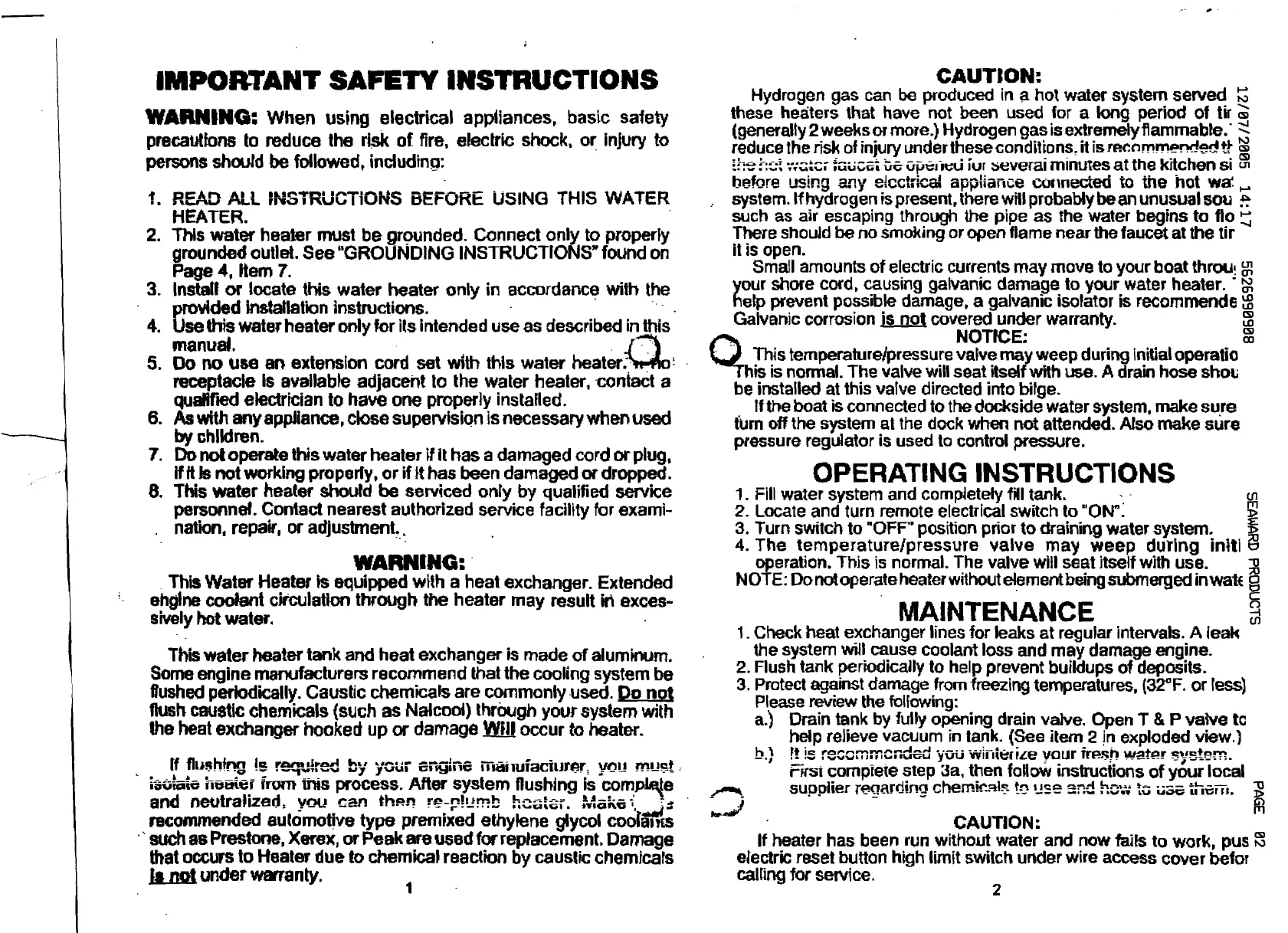 the water heater, contact