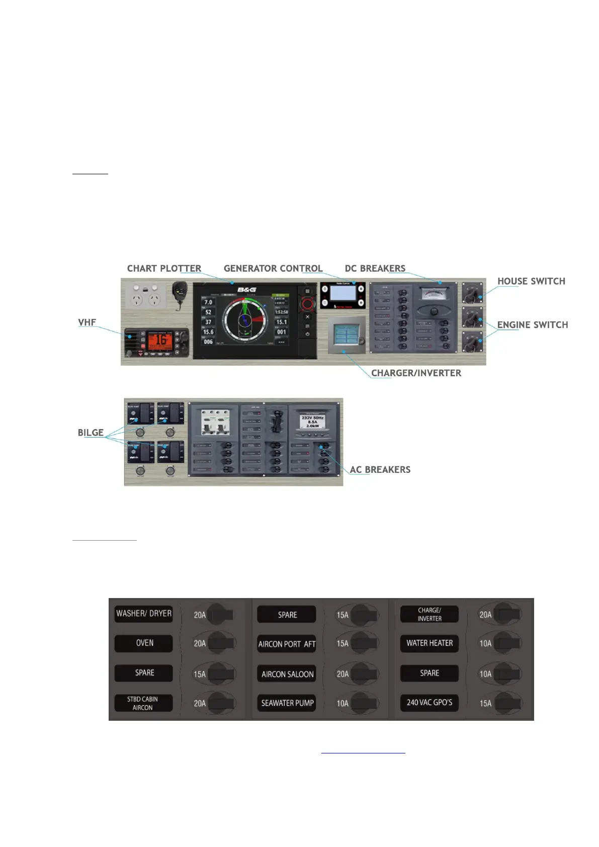 1. Turn off all drawing breakers (CHARGER/INVERTER, WATER HEATER, 240V GPO’s, AIR –