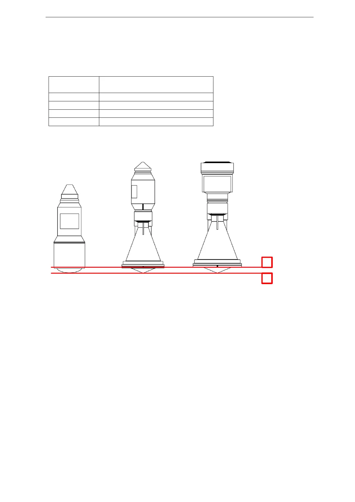 sensor. The following minimum distances to the water surface apply to the various sensor types: