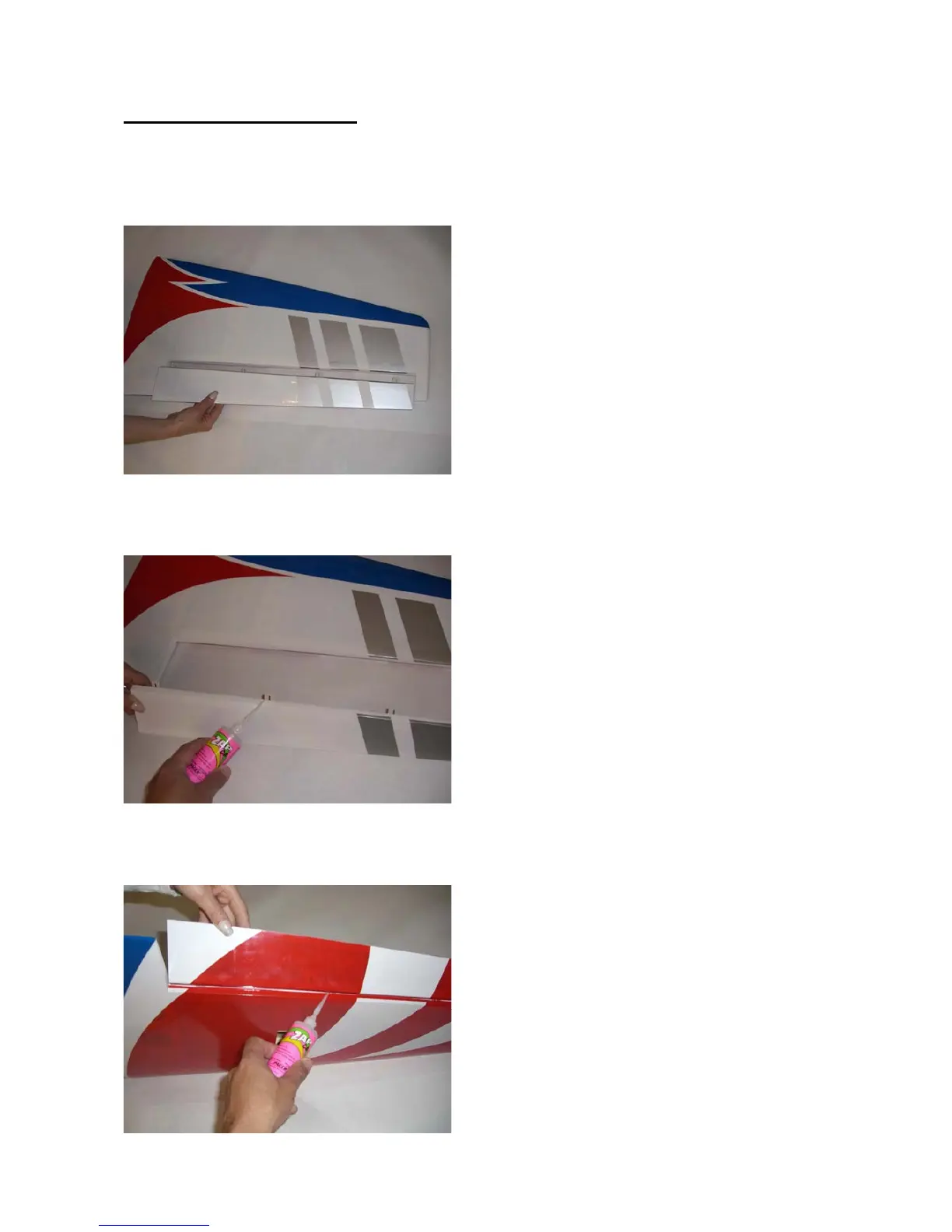 Locate the aileron and carefully glue, with some drops of thin CA, the hinges into the wing panel.