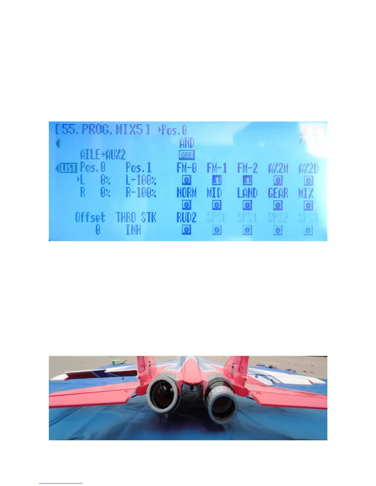 Full aileron RIGHT → vektor 2 DOWN 100%