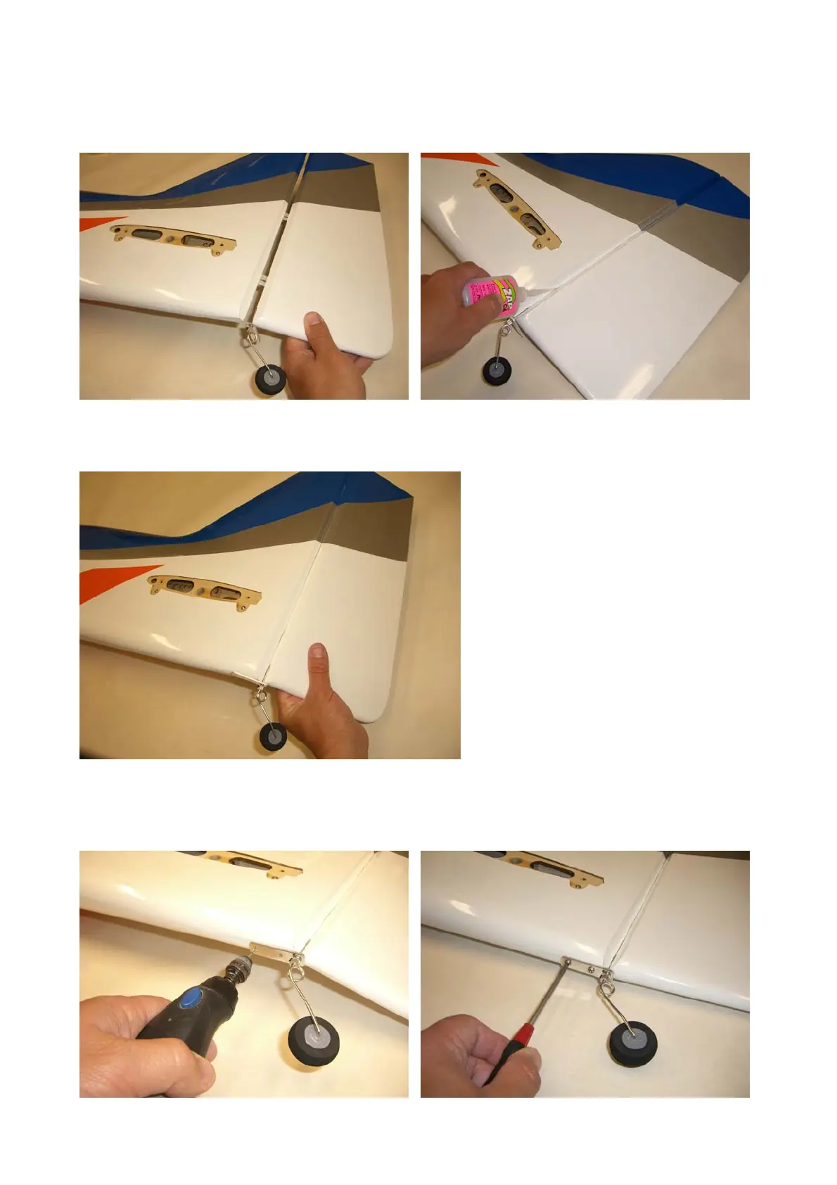 Using a 1,5mm drill bit, carefully drill the two holes for fixing the tail wheel on the fuselage. Use
