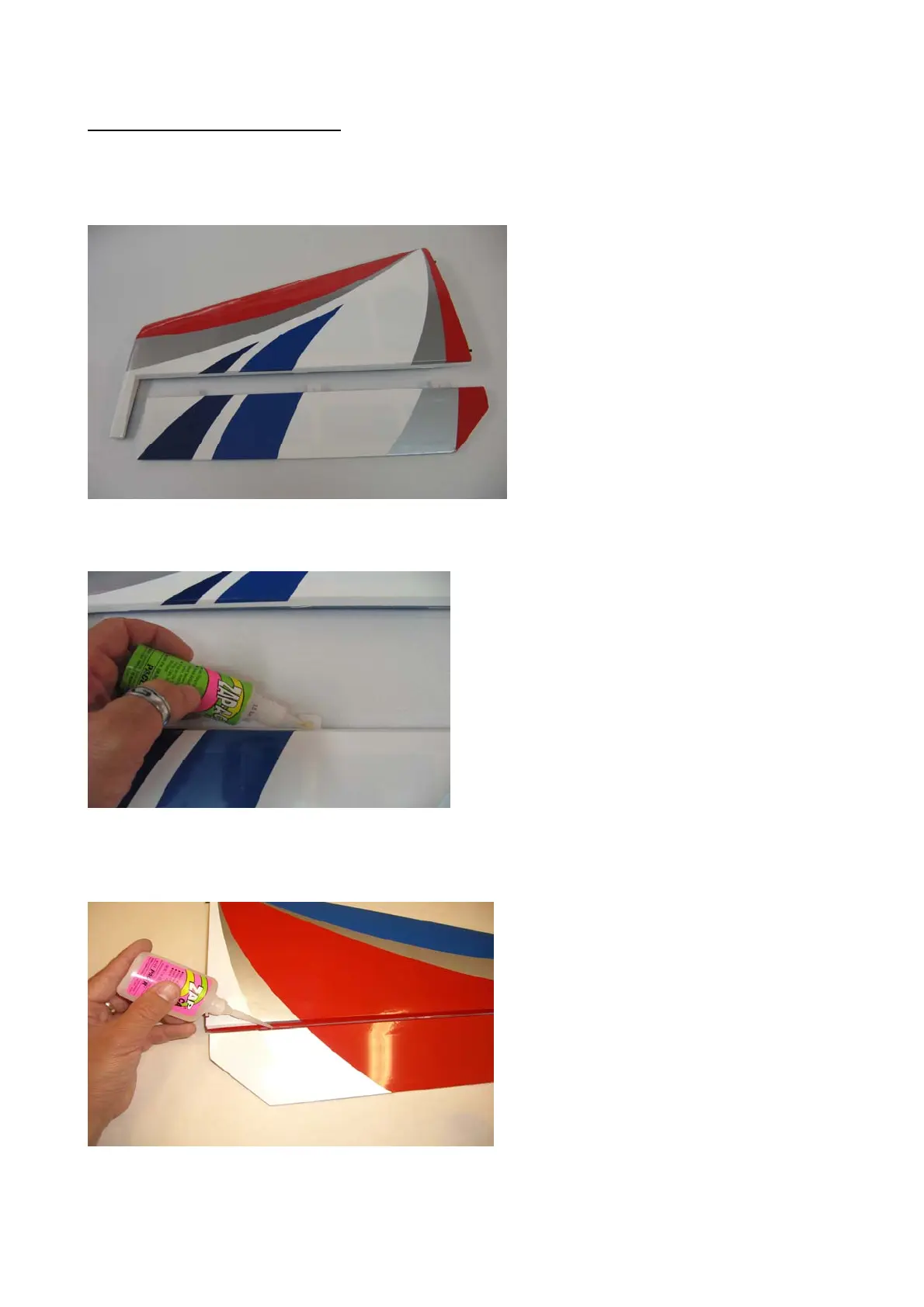 Carefully glue the hinges, with some drops of thin CA, in the elevator only.