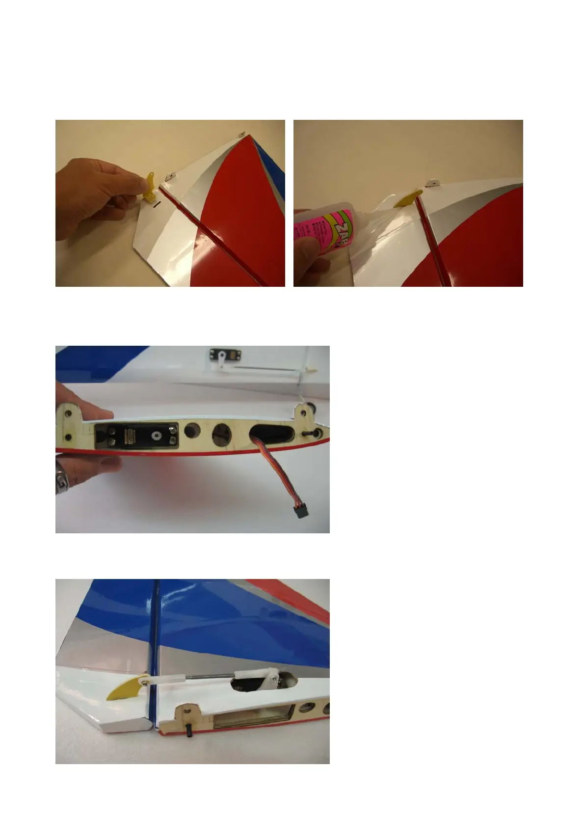 Locate the servo into stabilizer in his location, bringing out the servo’s lead.
