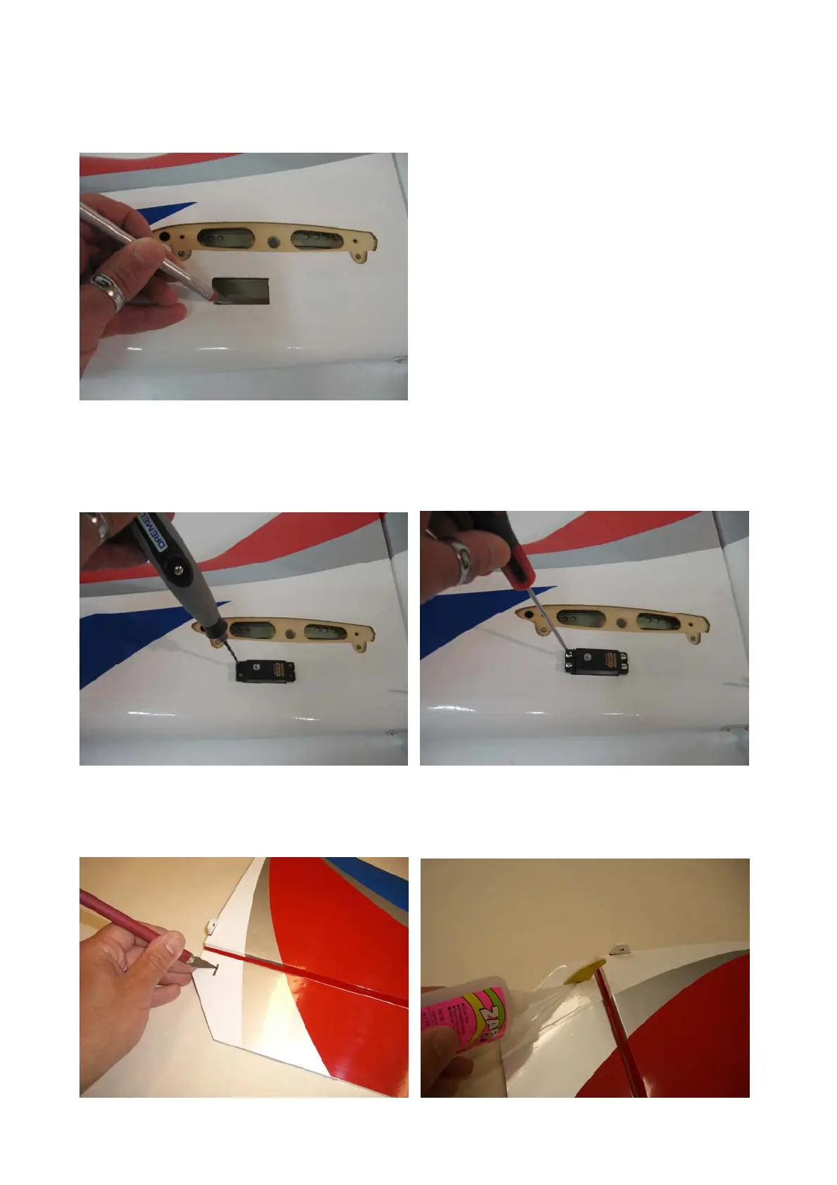 forward into fuselage the servo’s lead. Drill, using a 1,5mm drill bit, and install the four servo’s