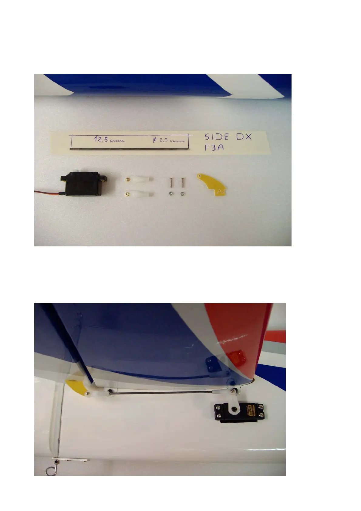 included). Install the servo hardware (gommets and eyelets) included with the servo.