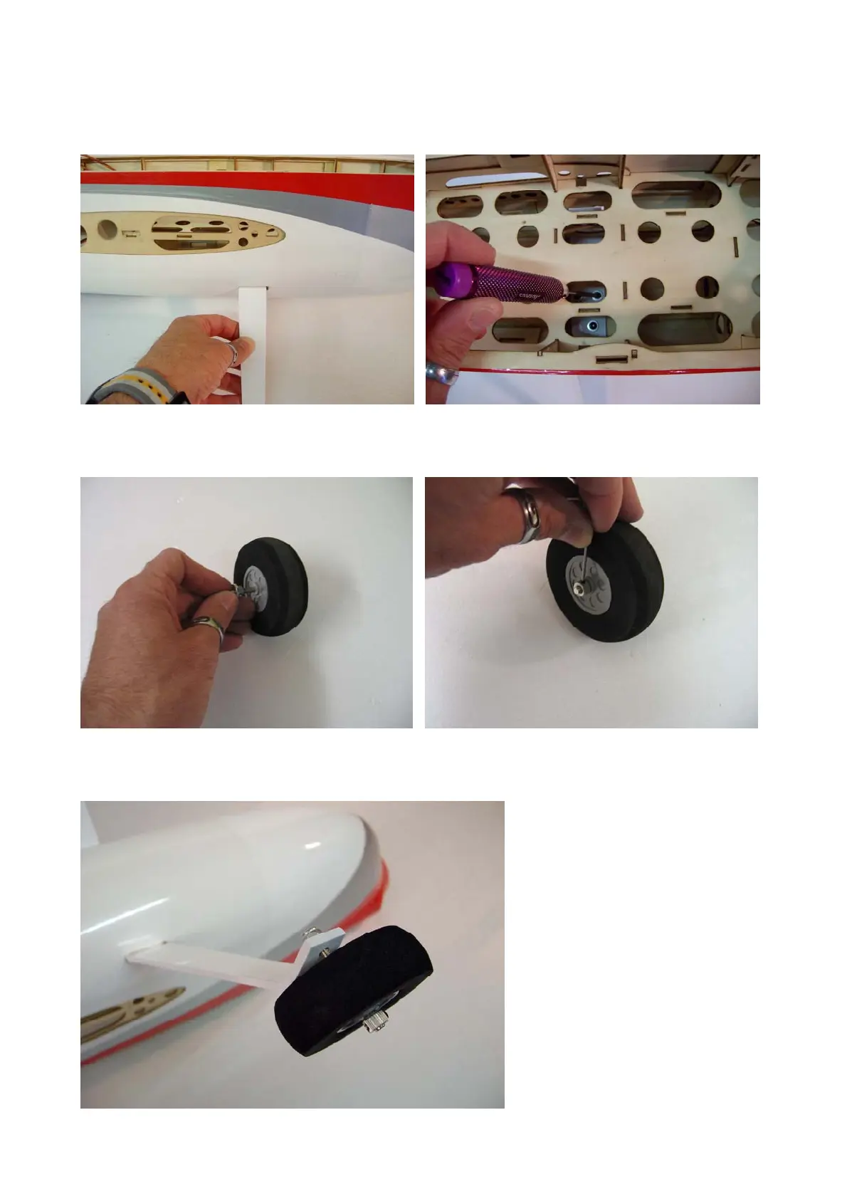 Using screws and washers, install the landing gear as follow.