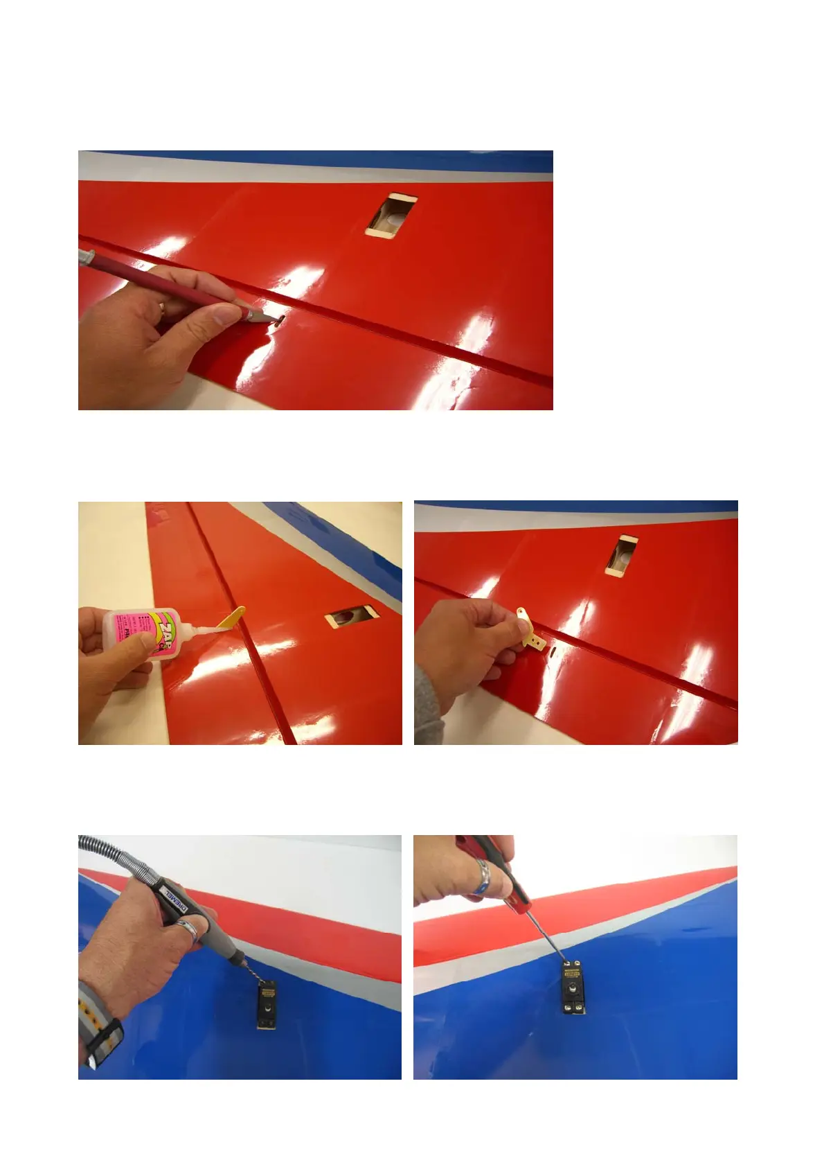 Place the fibreglass horn into aileron, check for correct alignment and glue it with some drops of