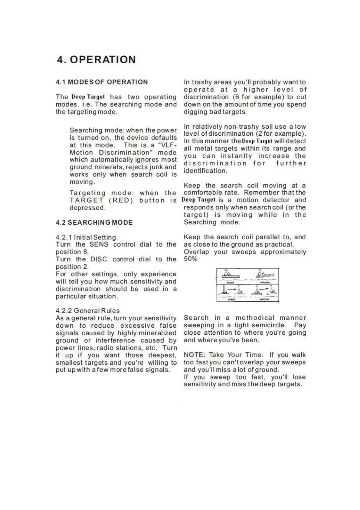 Seben Deep Target - Operation; Modes of Operation; Searching Mode
