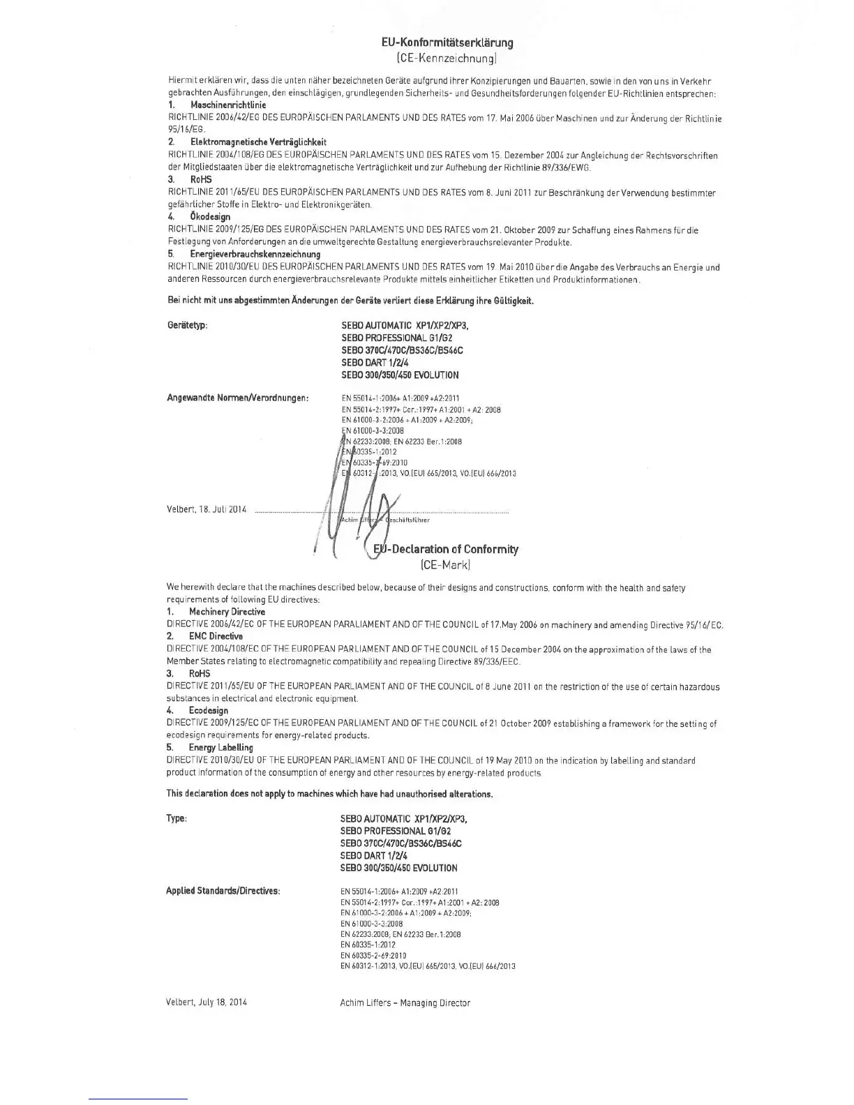 Sebo 300 EVOLUTION - EU Declaration of Conformity