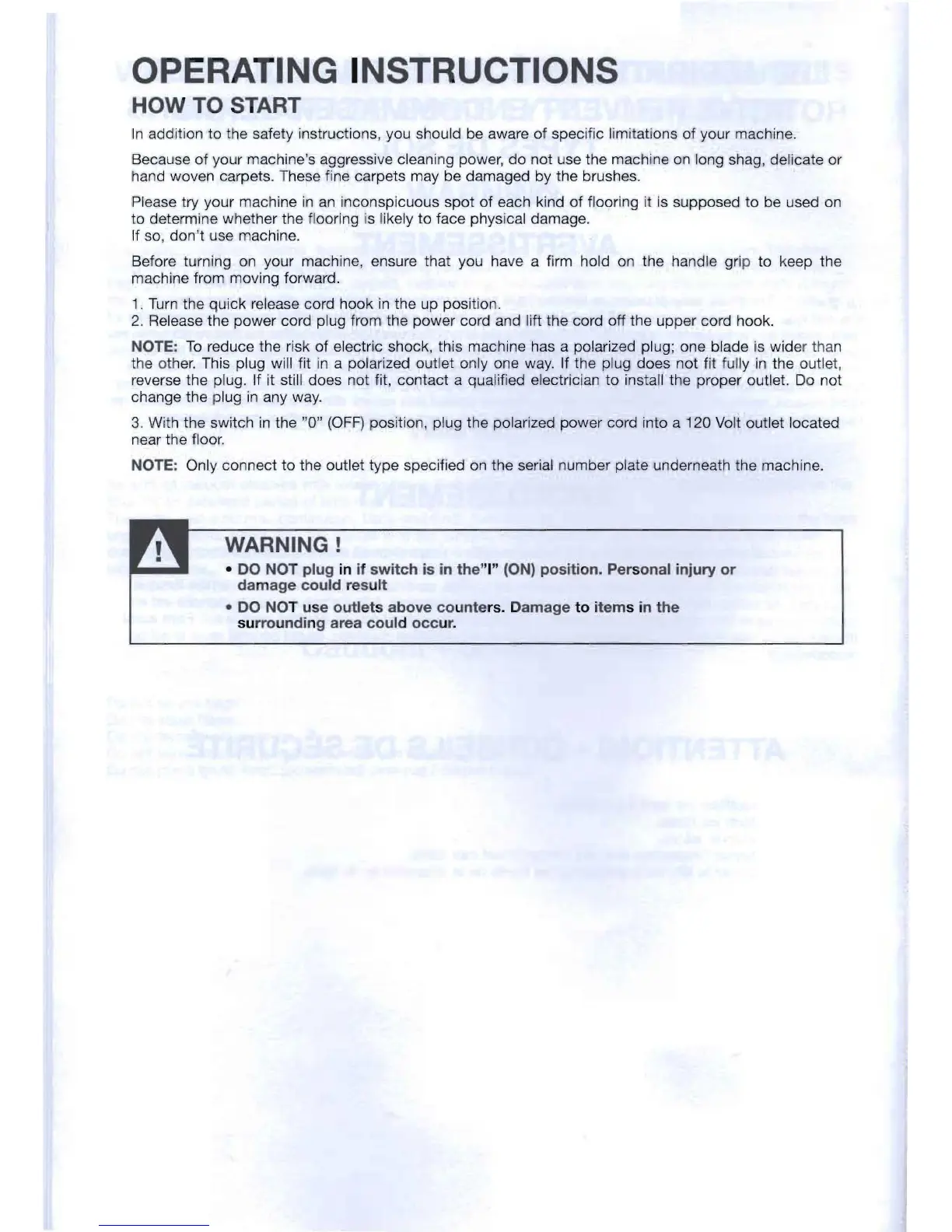 your machine's aggressive cleaning power, do not use the machine on long shag, delicate or