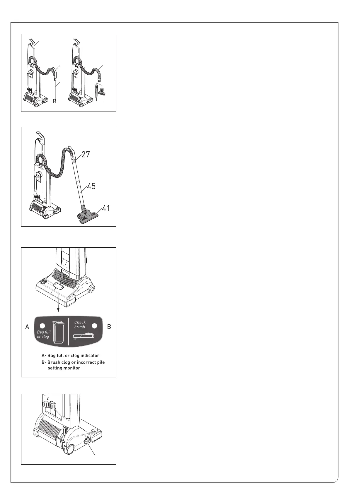 Red light (A): Flashing and motor off – filter bag is full, or clog in the hose or