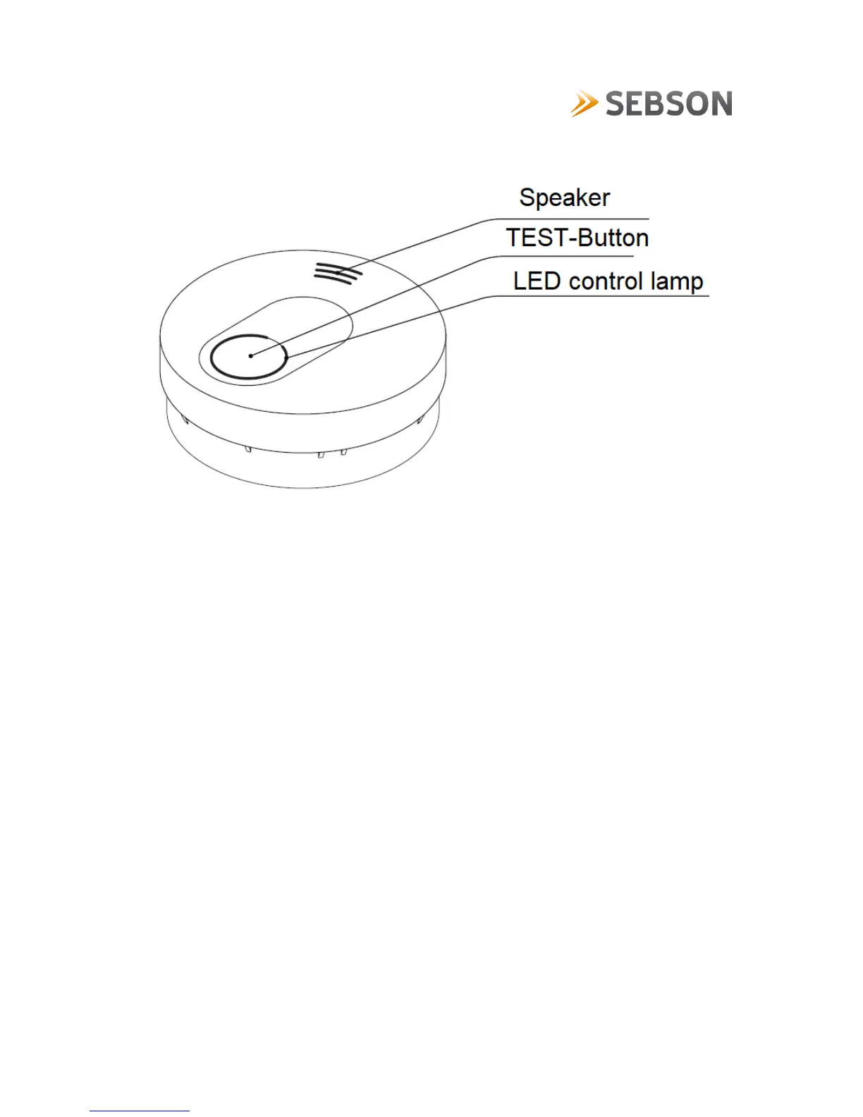 To activate the smoke alarm detector, hold down the TEST button for approx. 3s until the red