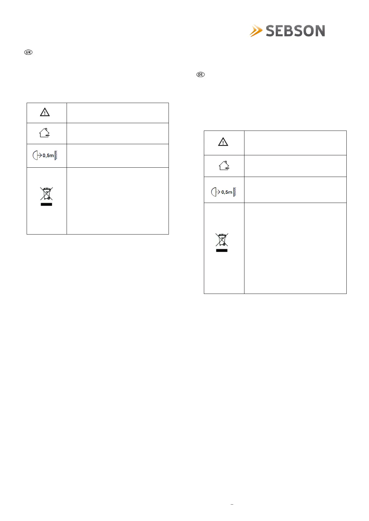 Thank you for choosing a product of SEBSON. Please read