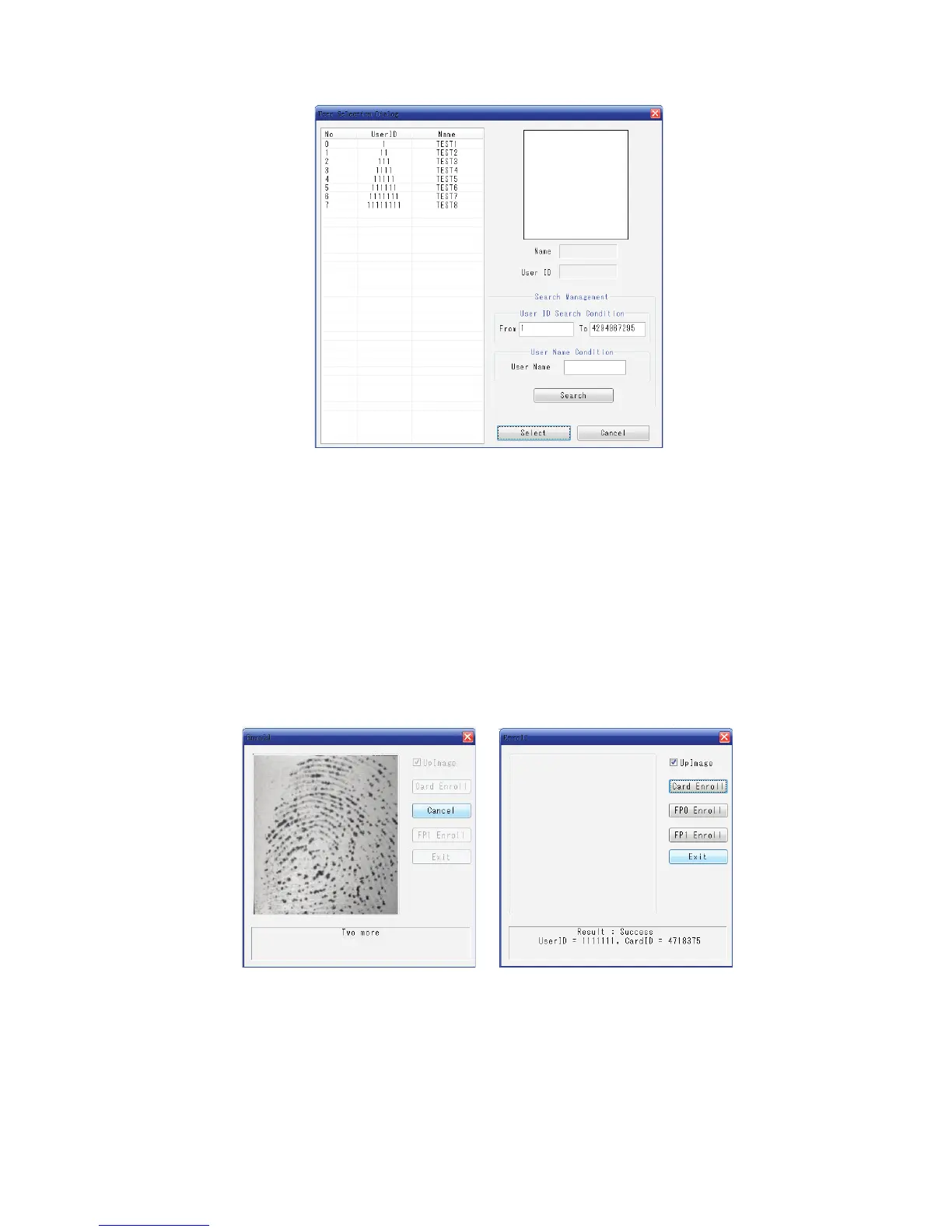 One user can be enrolled with 2 fingerprints and 1pc card.