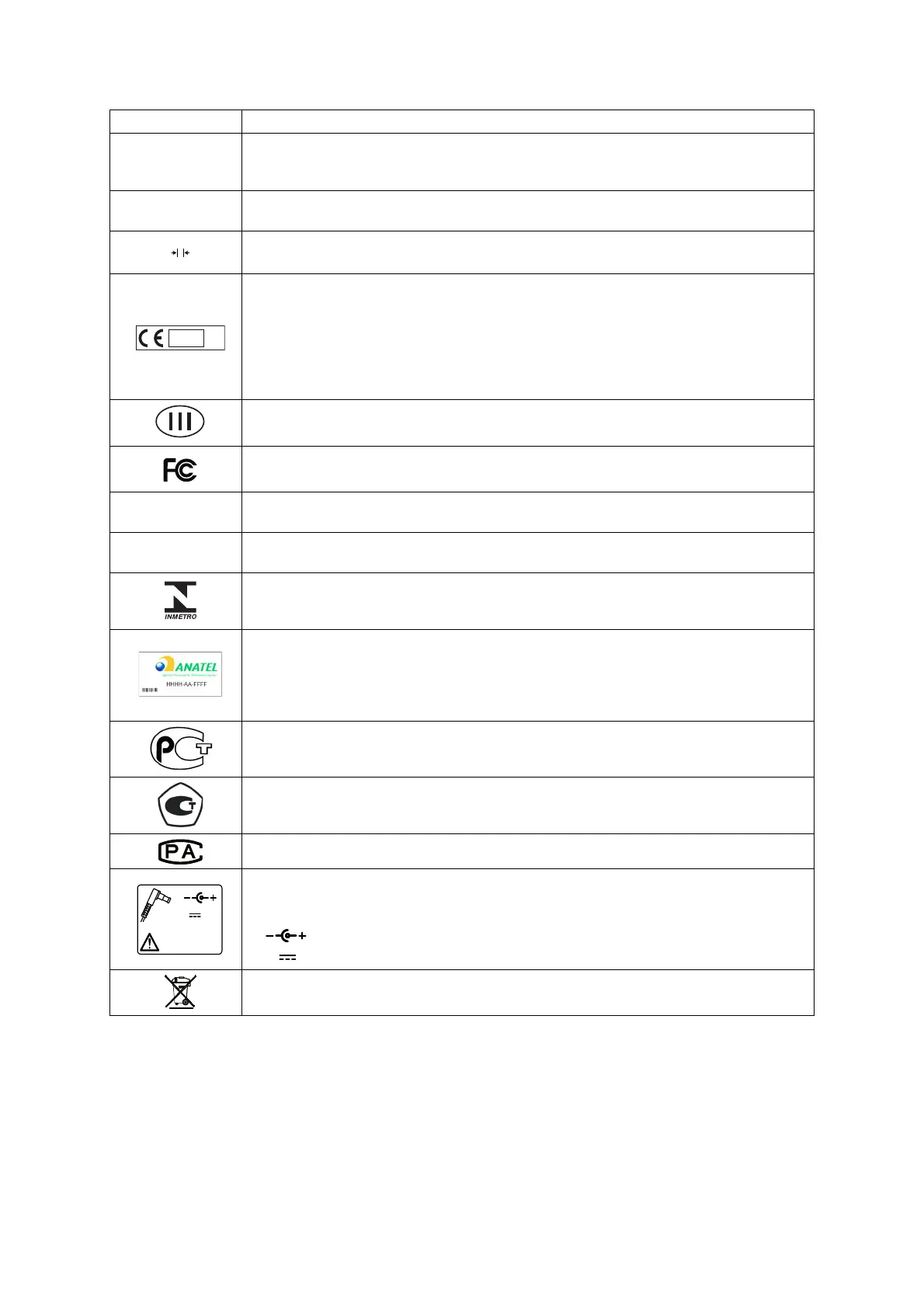 • : l'appareil doit fonctionner uniquement avec du courant continu