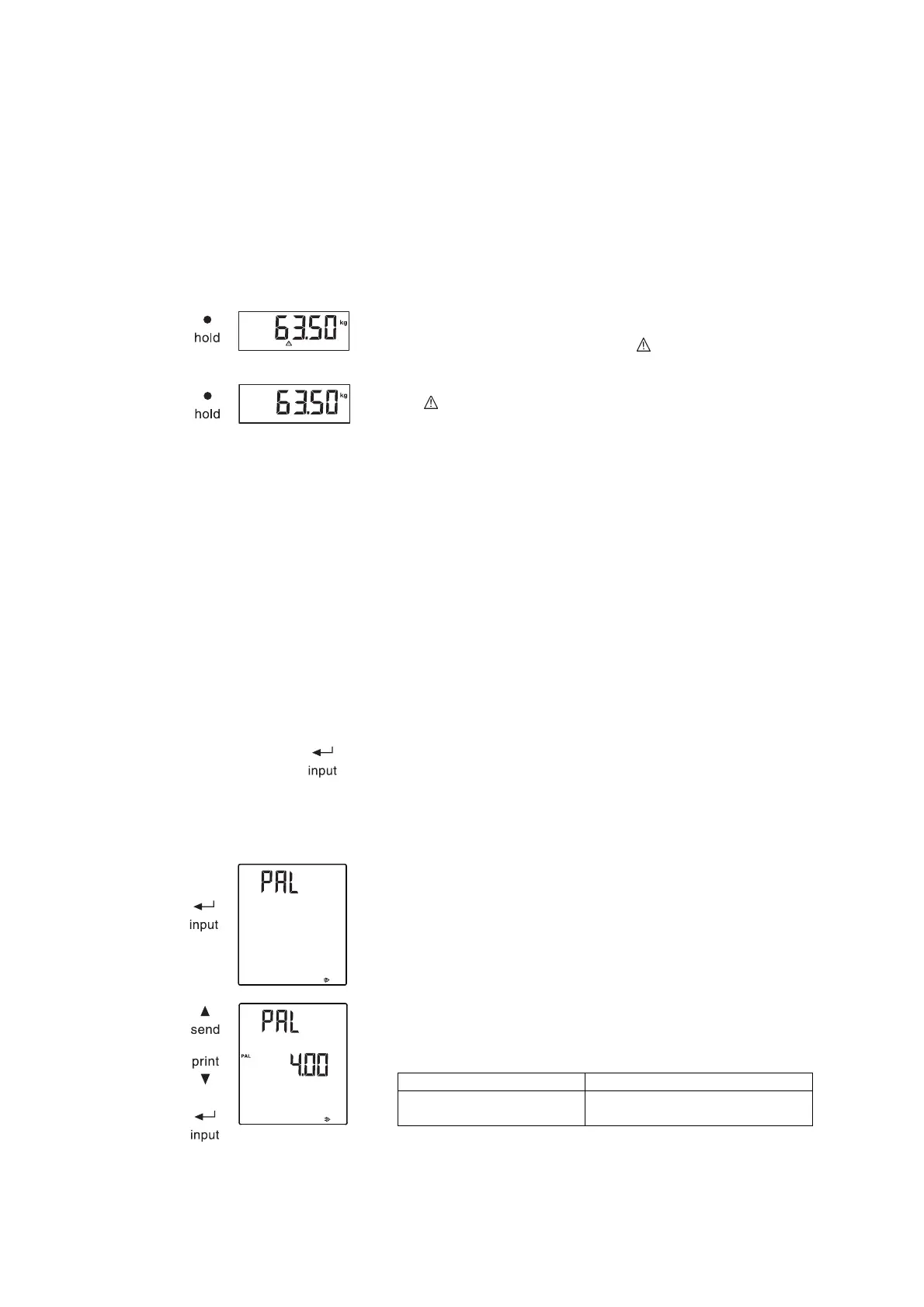 Die HOLD-Funktion ist nur für den Gewichtswert manuell aktivierbar.