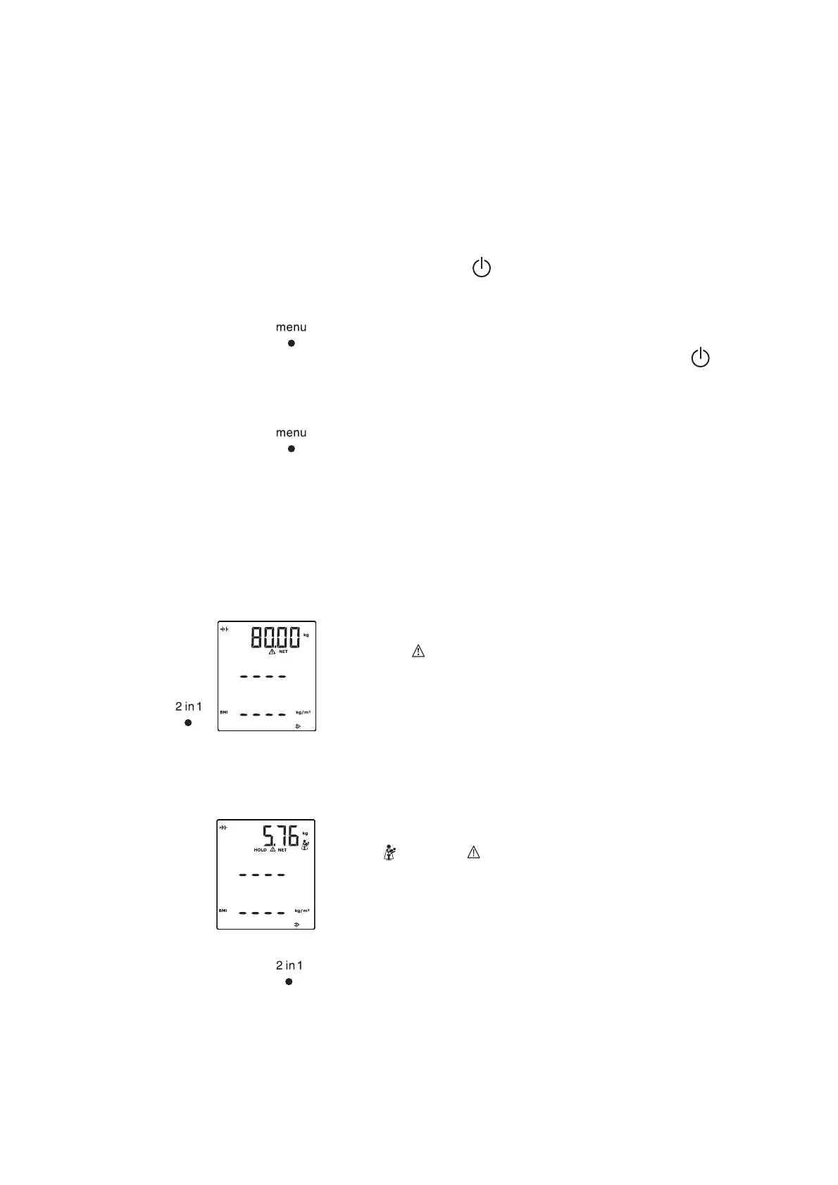 Weighing babies/toddlers (2-in-1) The 2 in 1 function can be used to determine the weight of babies and tod-