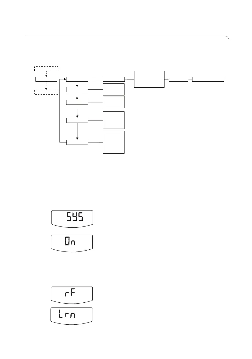 5. Valitse alavalikosta "rf" valikkokohta "lrn" (learn =