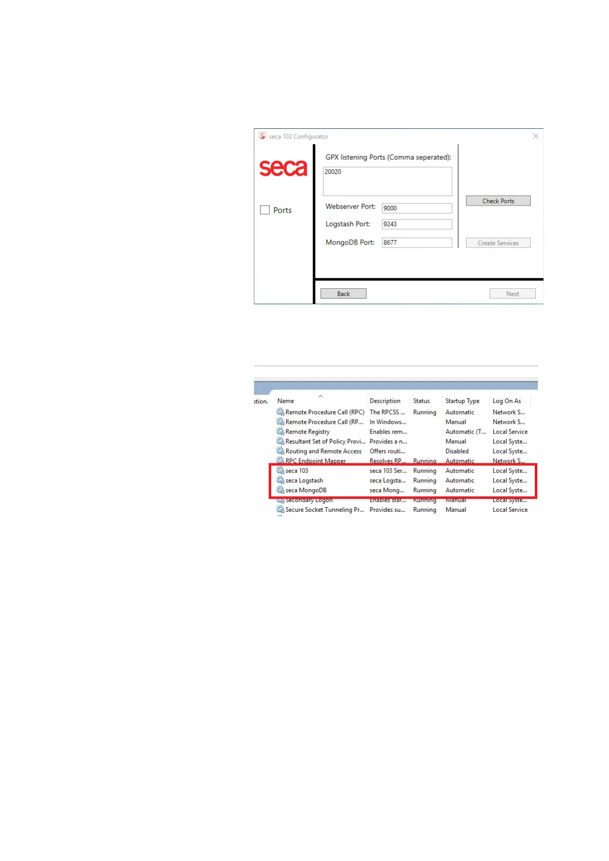 c) Click “Create Services” to start services (seca 103.dll, seca