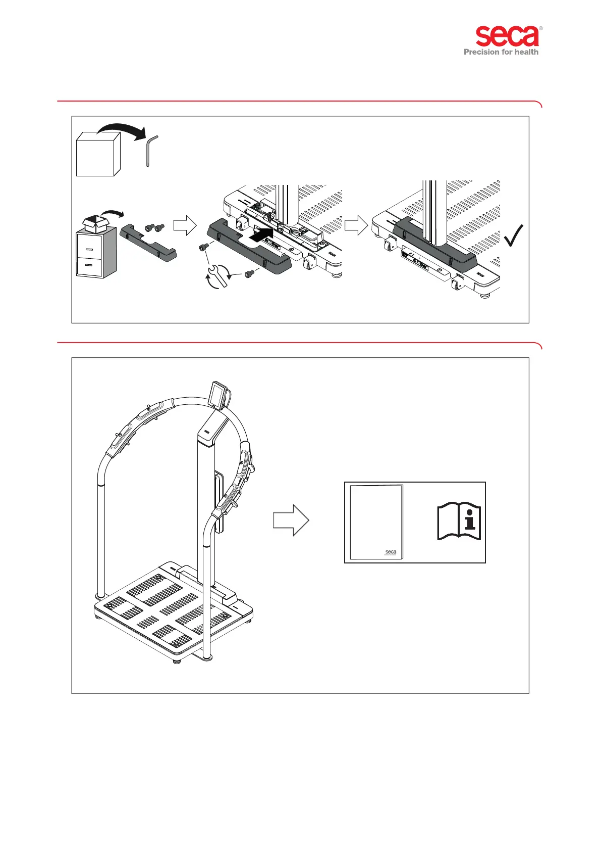 Seca 455 - 17. Abdeckung des Säulenanschlusses montieren • Mounting Column Socket cover • Monter le cache sur la surface dassemblage de la colonne • Montar la cubierta de la unión de la columna; 18. Vor Inbetriebnahme • Prior to Operation • Avant la mise en service • Antes de la puesta en marcha