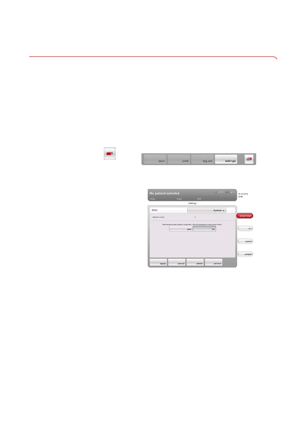 window is displayed before each bioimpedance analysis, proceed as outlined