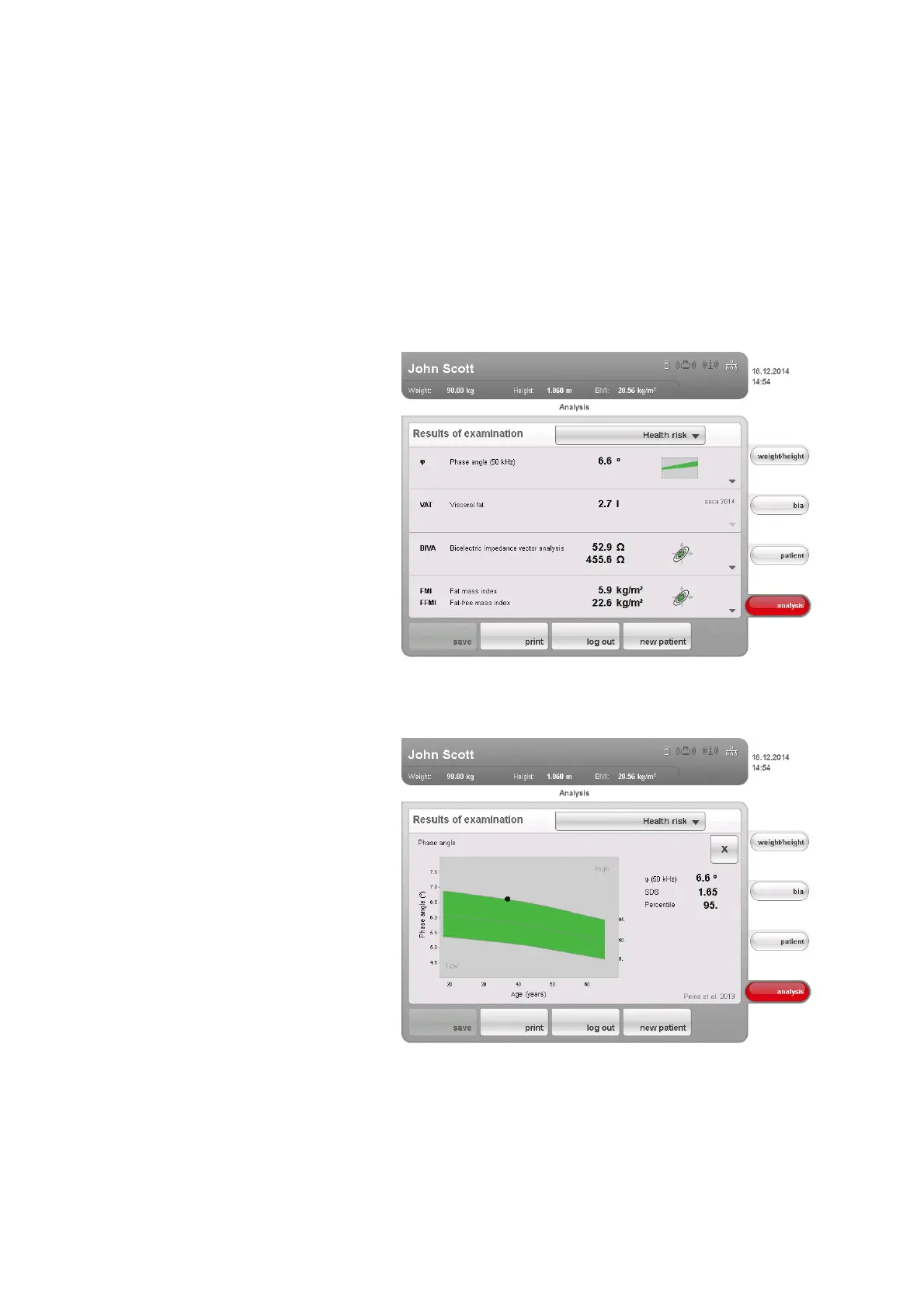 compare the results with values for healthy people. A body composition