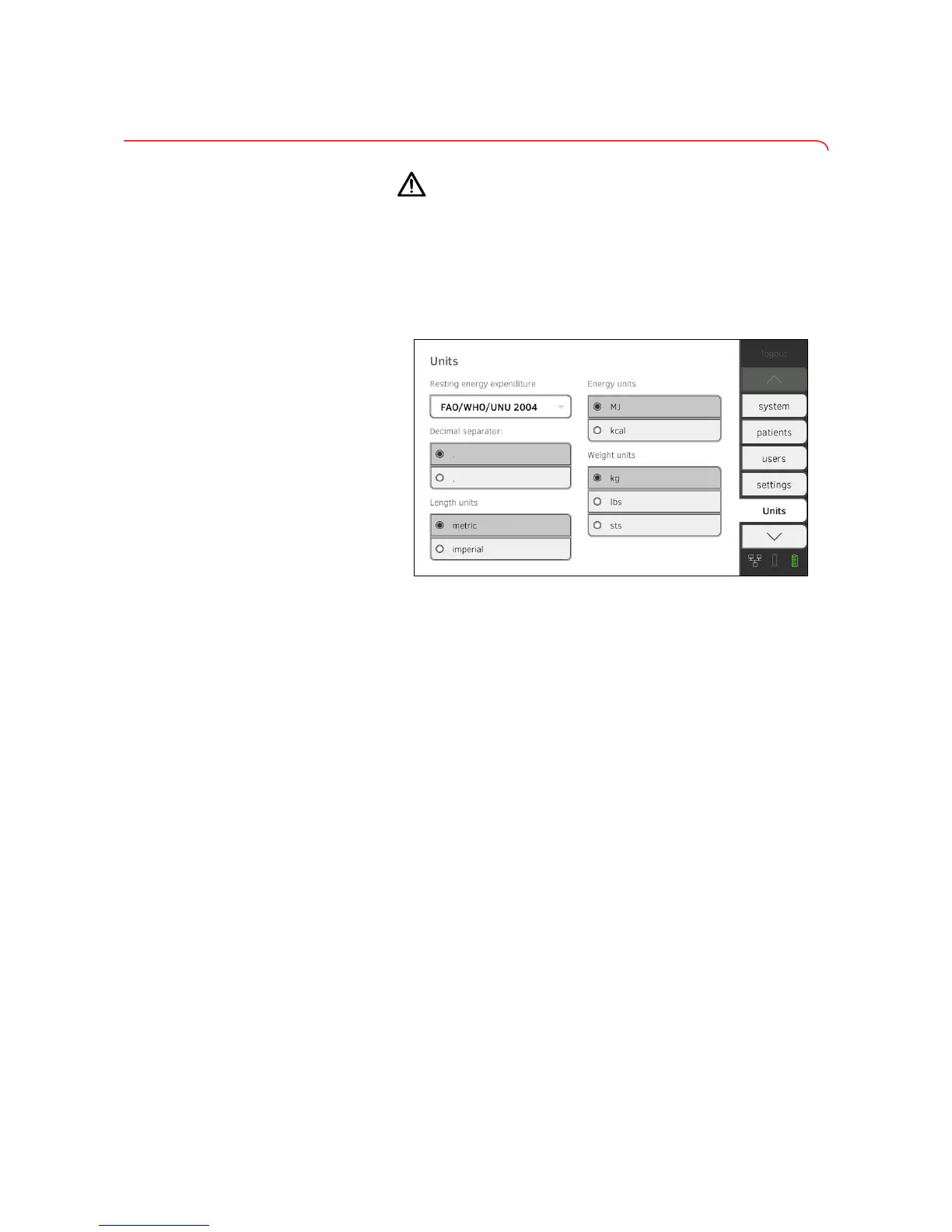 ► Specify the unit for weight