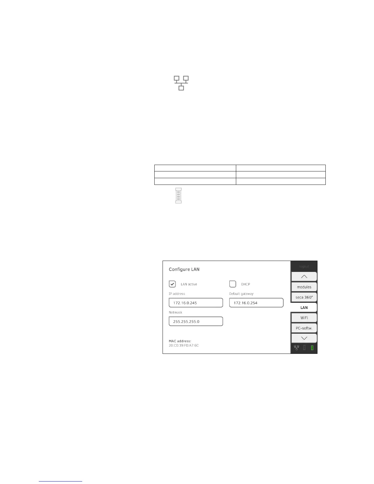 2. Press the LAN active checkbox.