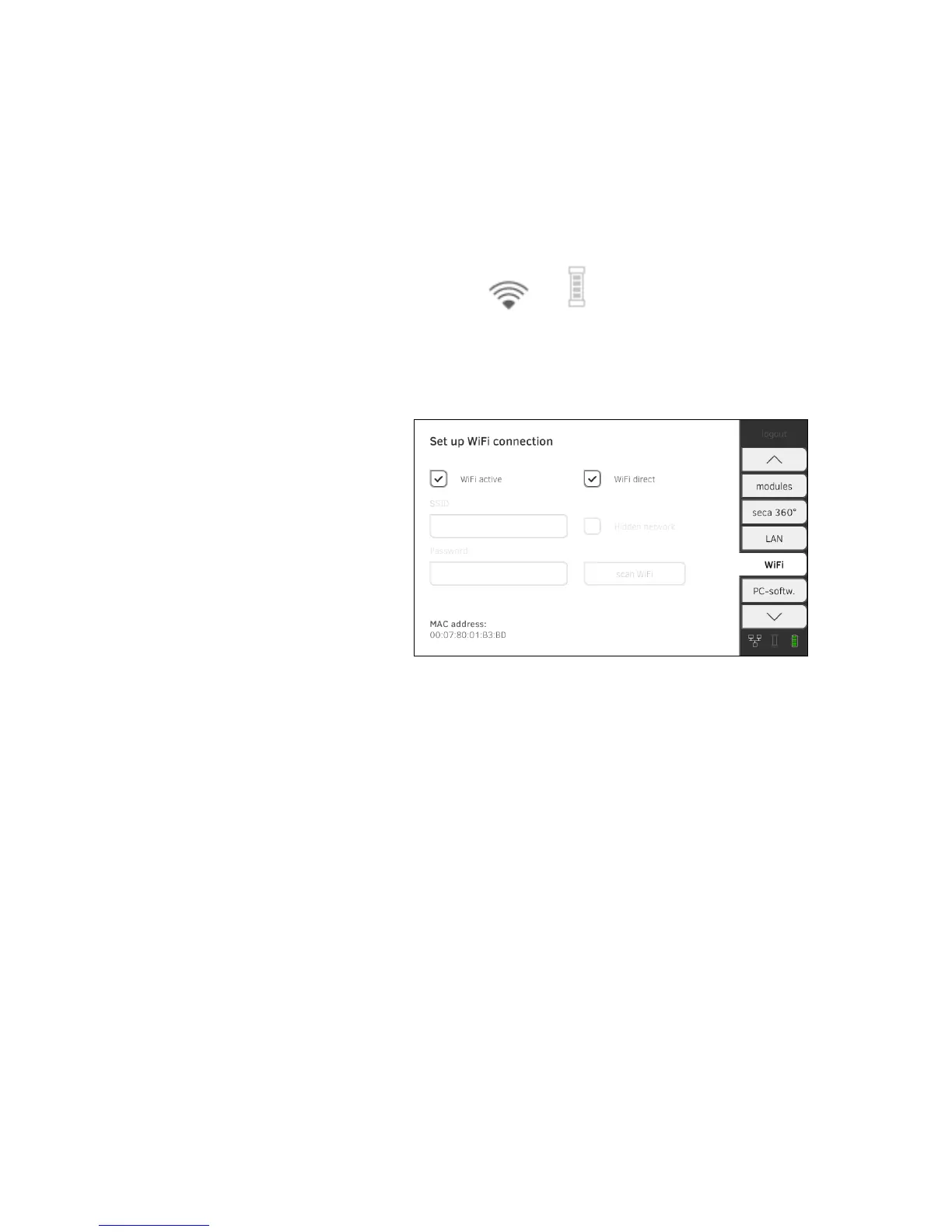 Deactivating/activating WiFi 1. Press the WiFi tab.