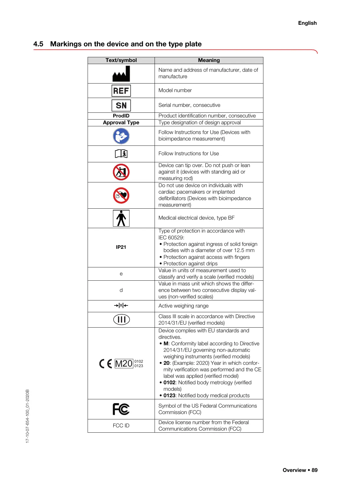 4.5 Markings on the device and on the type plate
