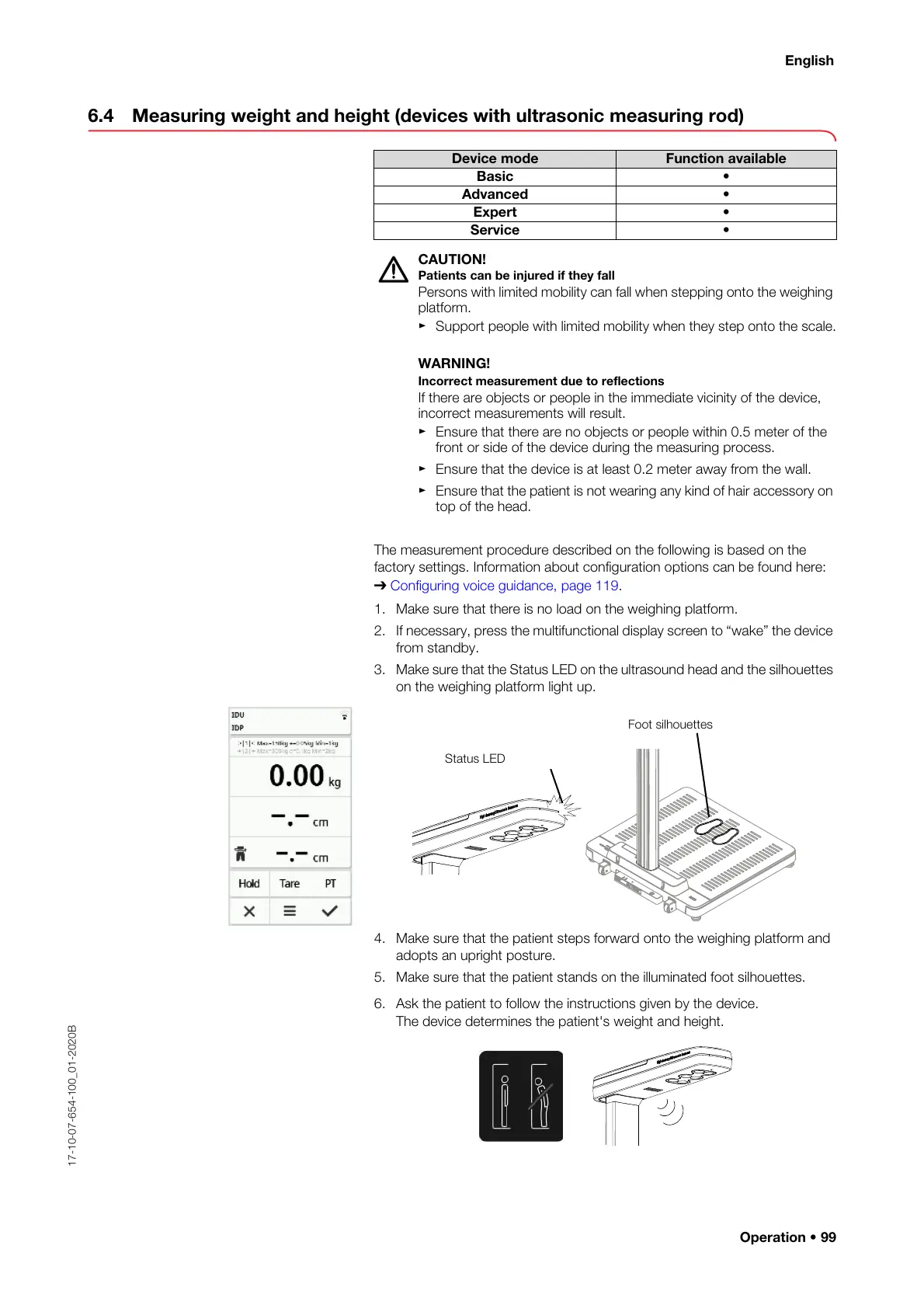 6.4 Measuring weight and height (devices with ultrasonic measuring rod)