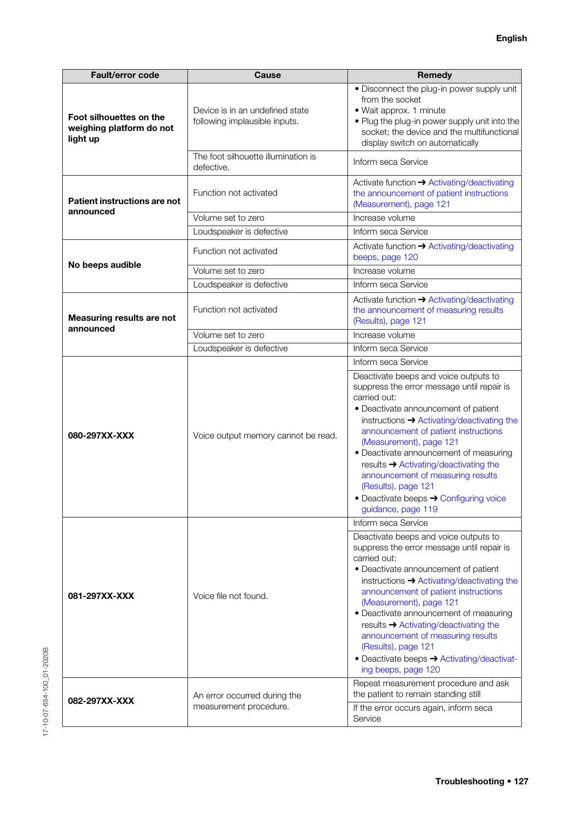 Fault/error code Cause Remedy