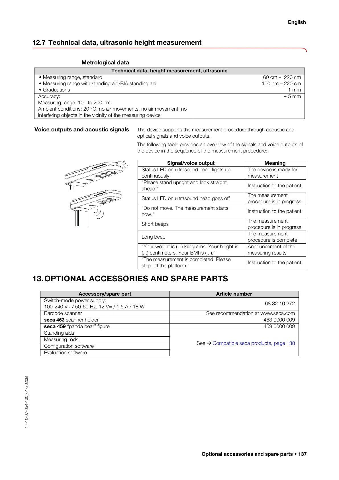 Voice outputs and acoustic signals The device supports the measurement procedure through acoustic and