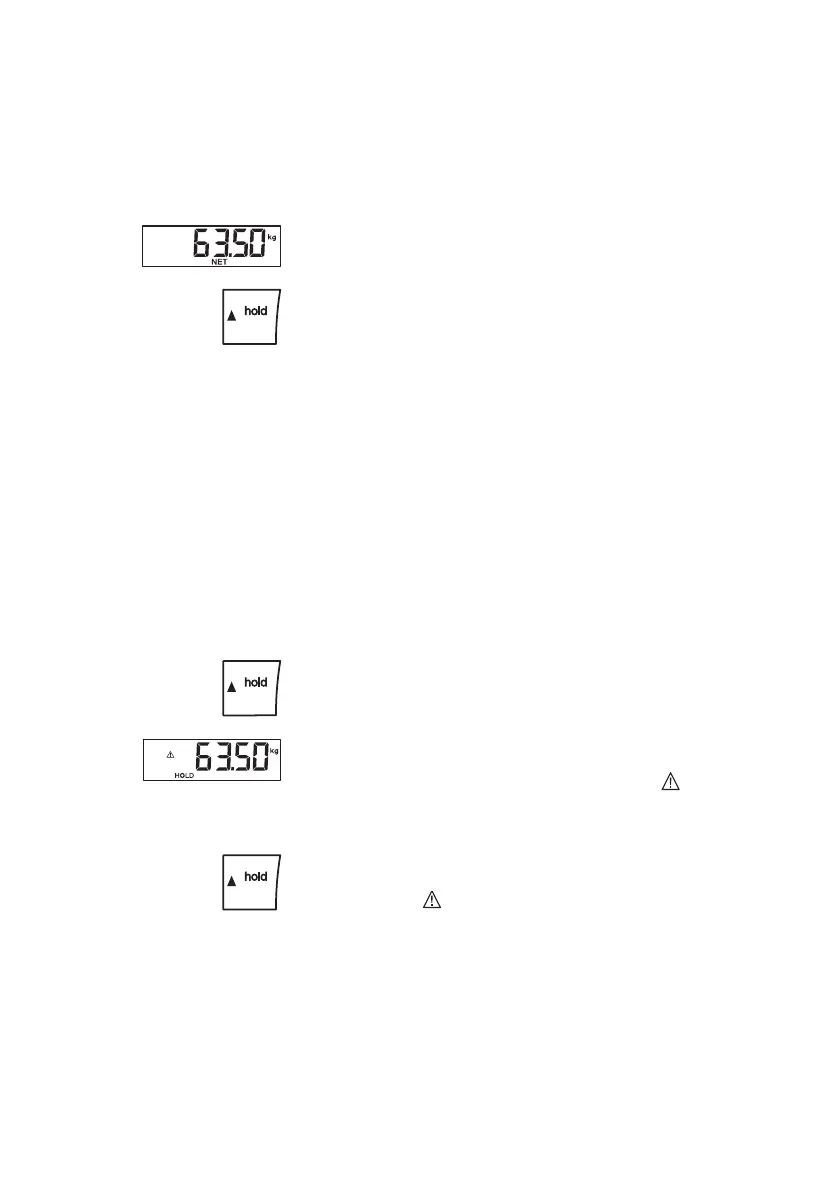 Quando ativa a função HOLD, o valor do peso continua