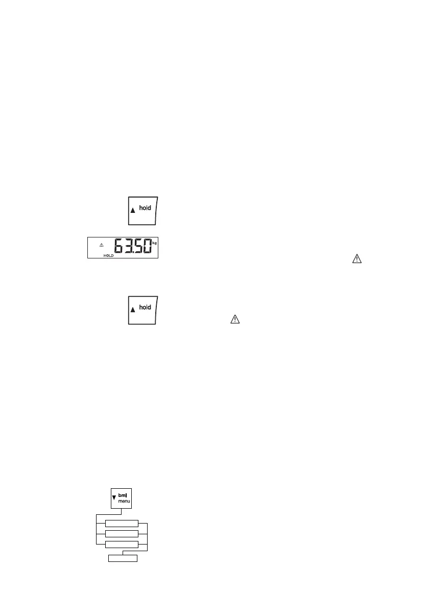 Quando ativa a função HOLD, o valor do peso continua