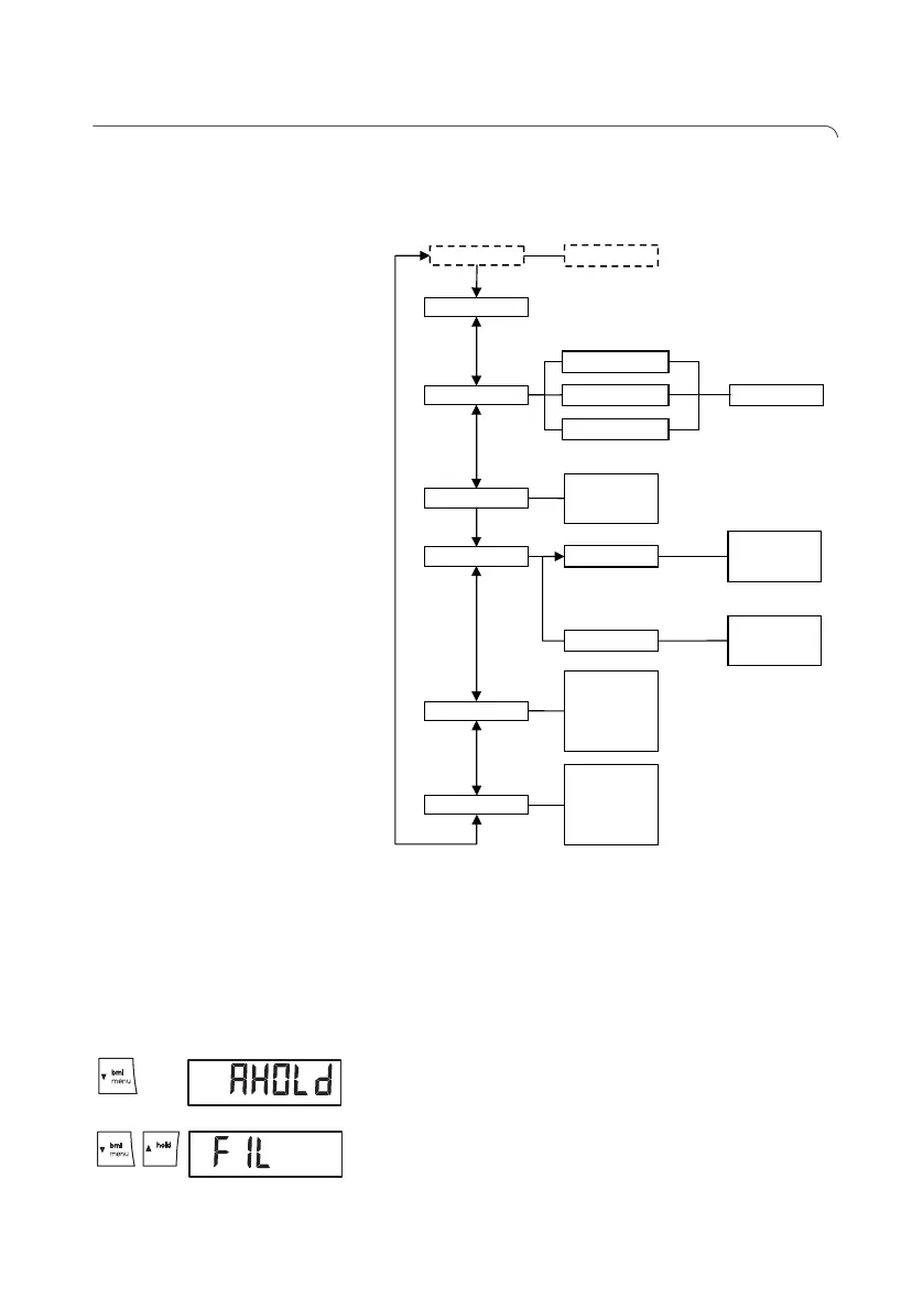 2. Mantenha a tecla de seta (bmi/menu) premida, até