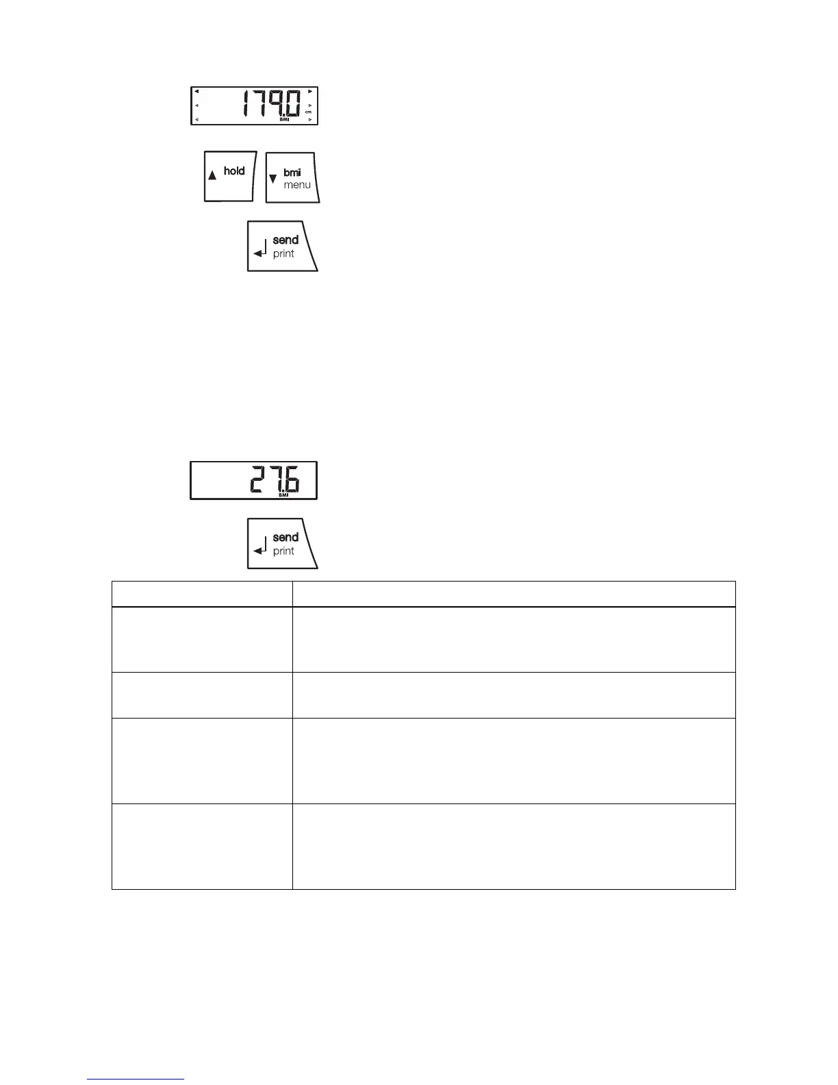 10. To deactivate the BMI function, briefly press the