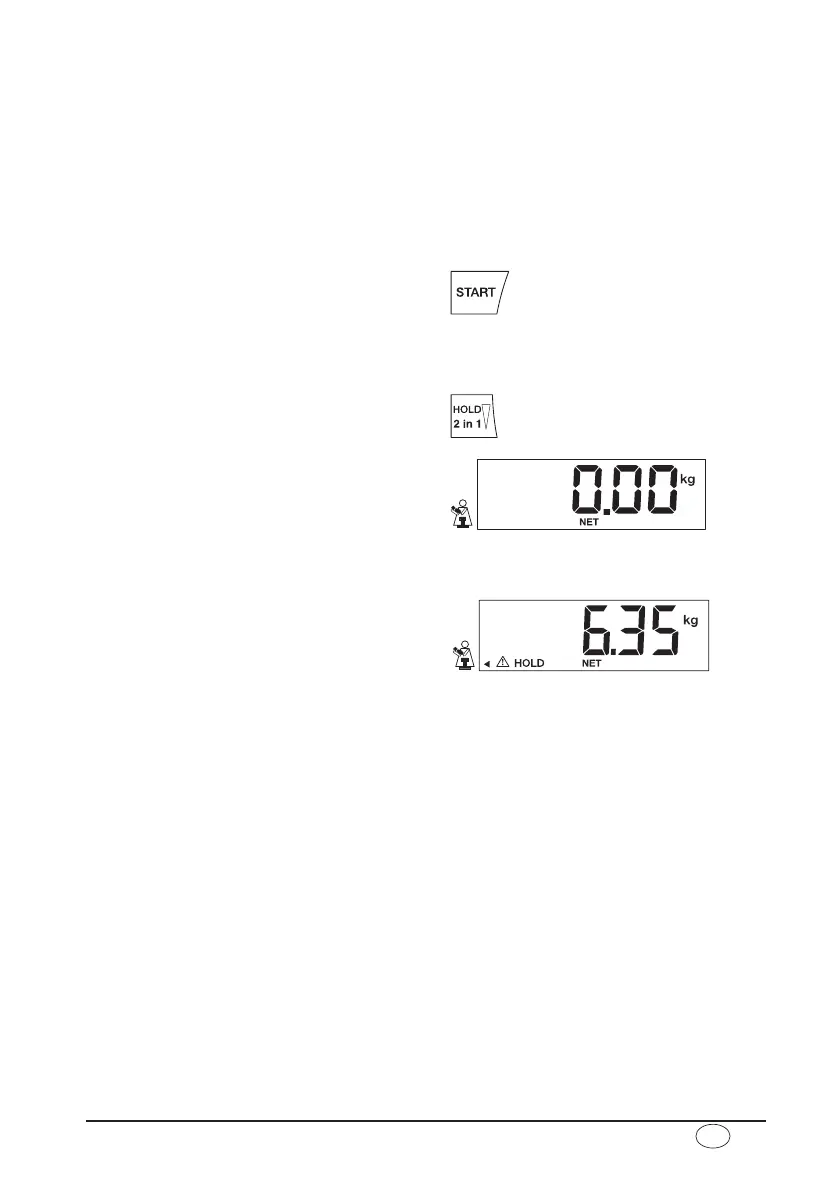 – tasten HOLD/2 in 1 trykkes (den totale vekten indikeres),