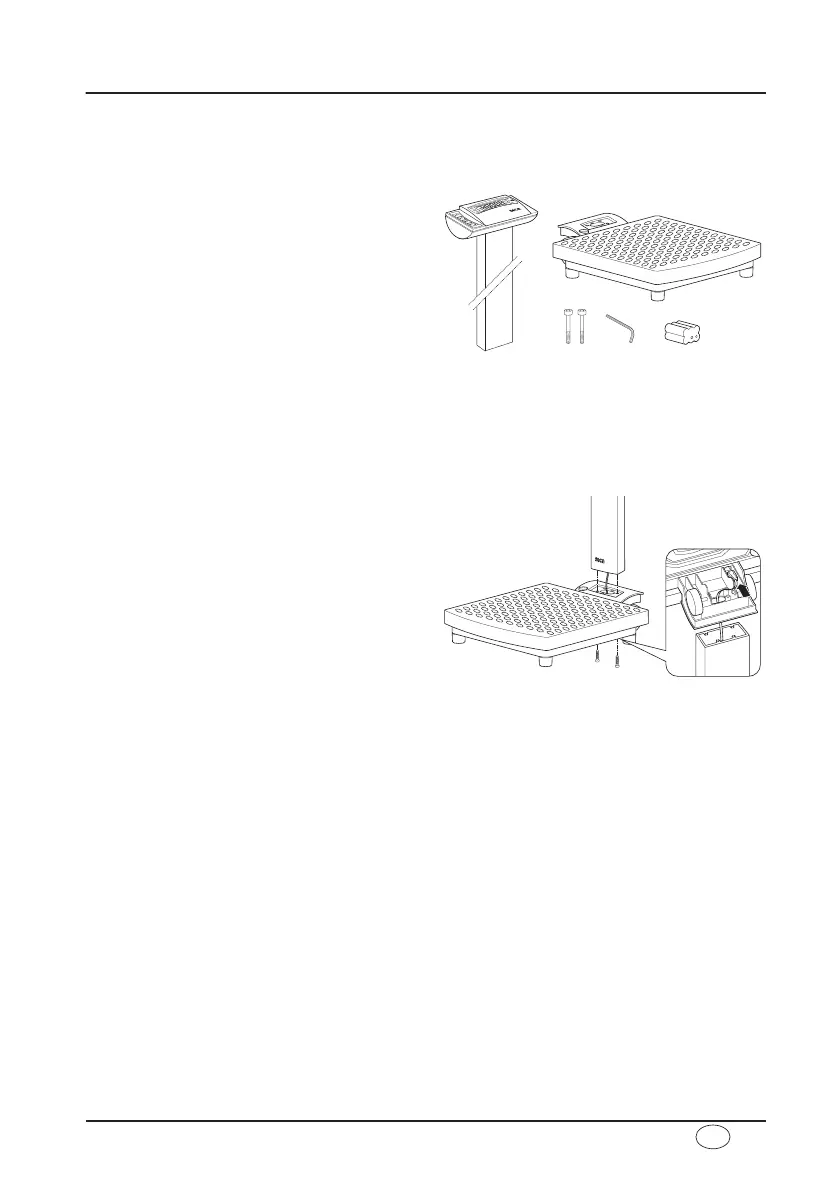 A coluna e o cabeçote de indicação montam-se na plataforma de pesagem.