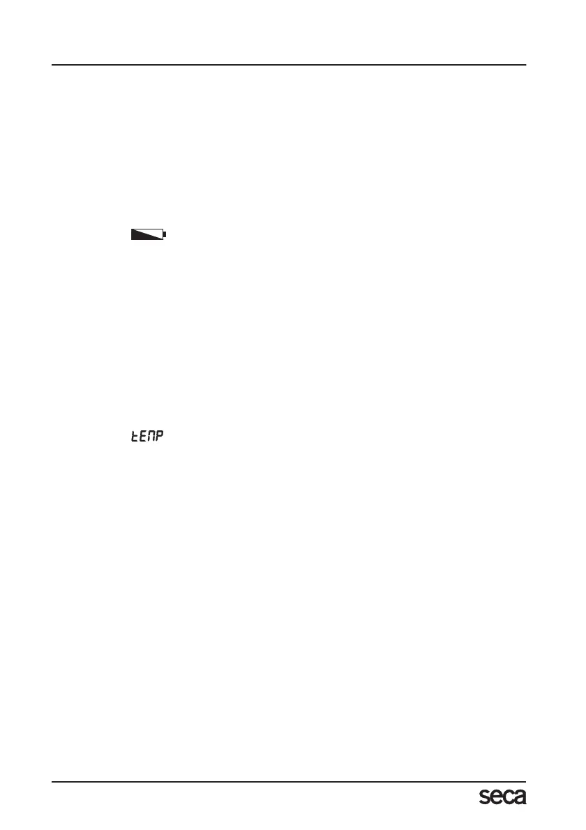 – Vægtens omgivelsestemperatur er for høj eller for lav. Opstil vægten i en omgivelses-