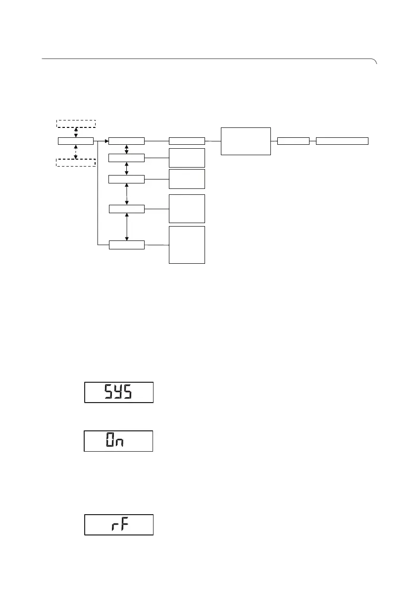 "rF". Information om navigeringen i menyn finns på