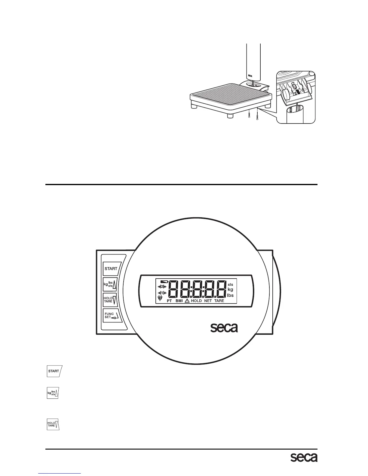 La colonna con la testa di visualizzazione si monta sulla piattaforma di pesata.