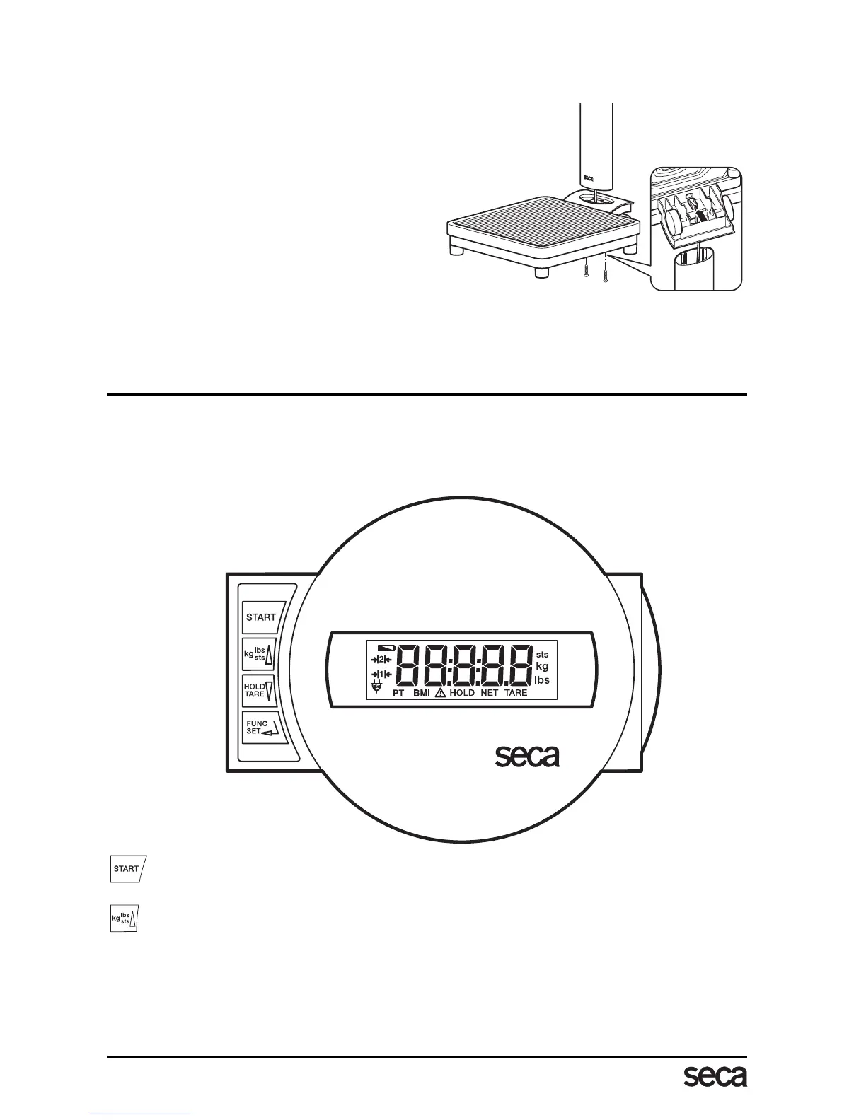 La columna con el cabezal indicador se monta en la plataforma de pesada.