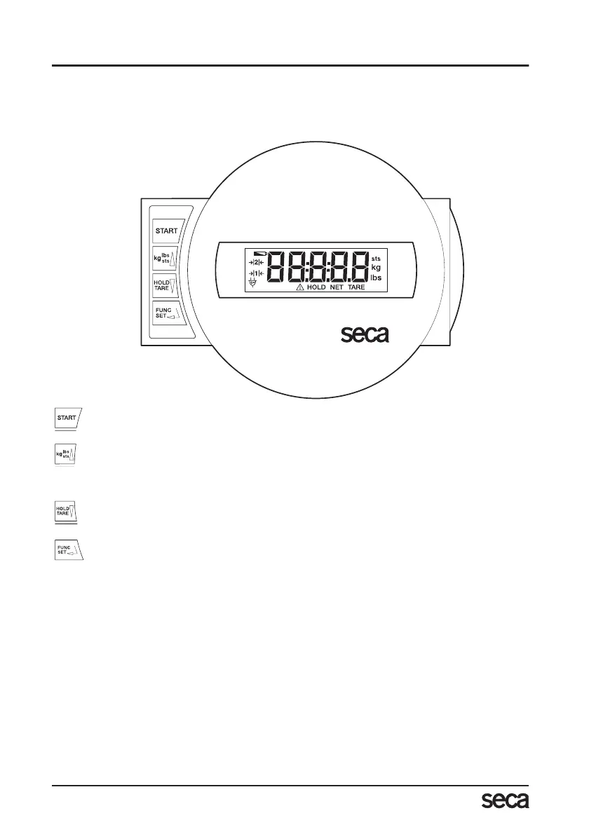 Pressionar de tecla prolongado s mudar entre lbs e sts