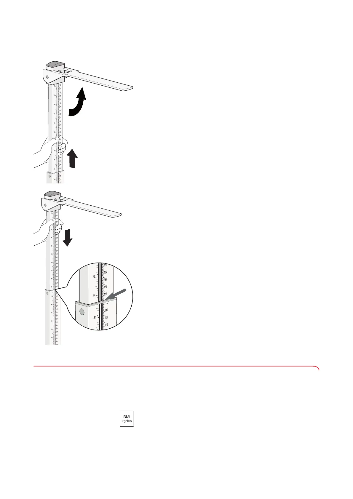 Medir una altura > 1,22 m Para medir una altura > 1,22 m el resultado de medición se lee en el