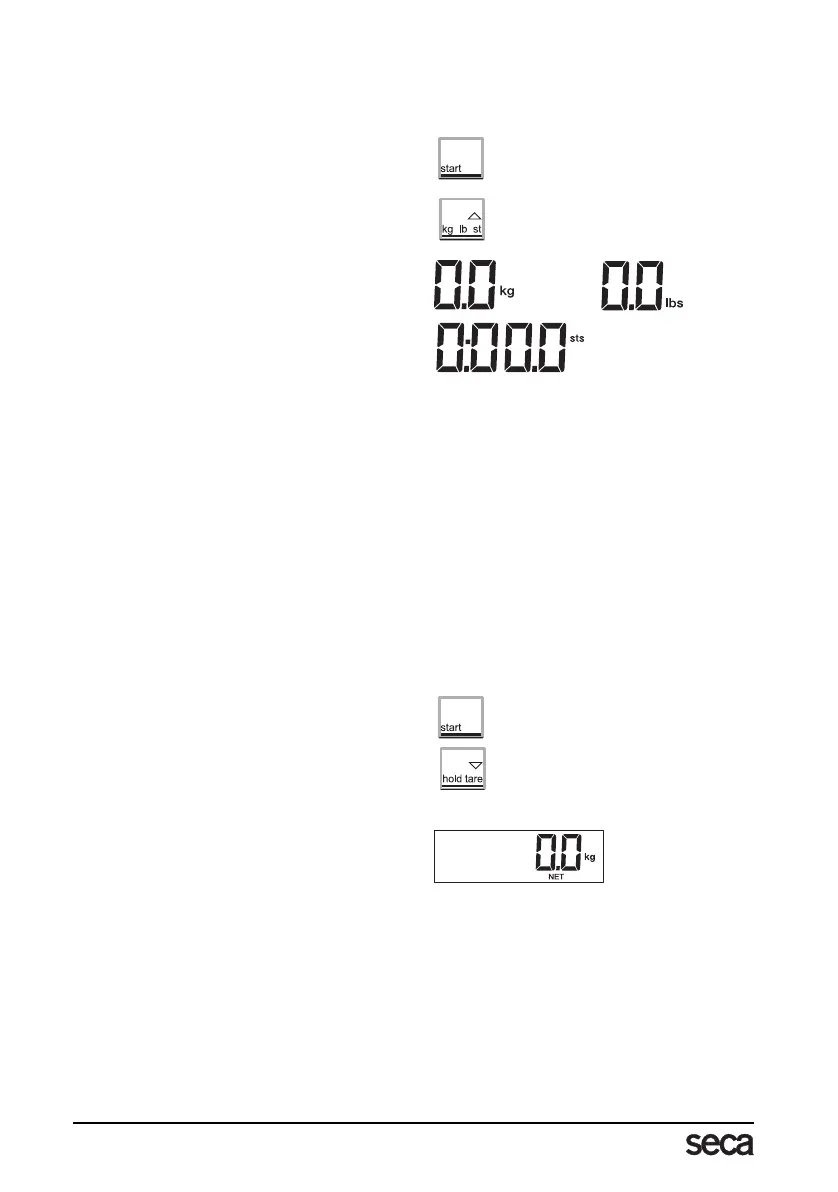 Wyniki ważenia można przełączać z kilogramów (kg) na funty (lbs) lub z funtów (lbs) na kamienie (sts) i