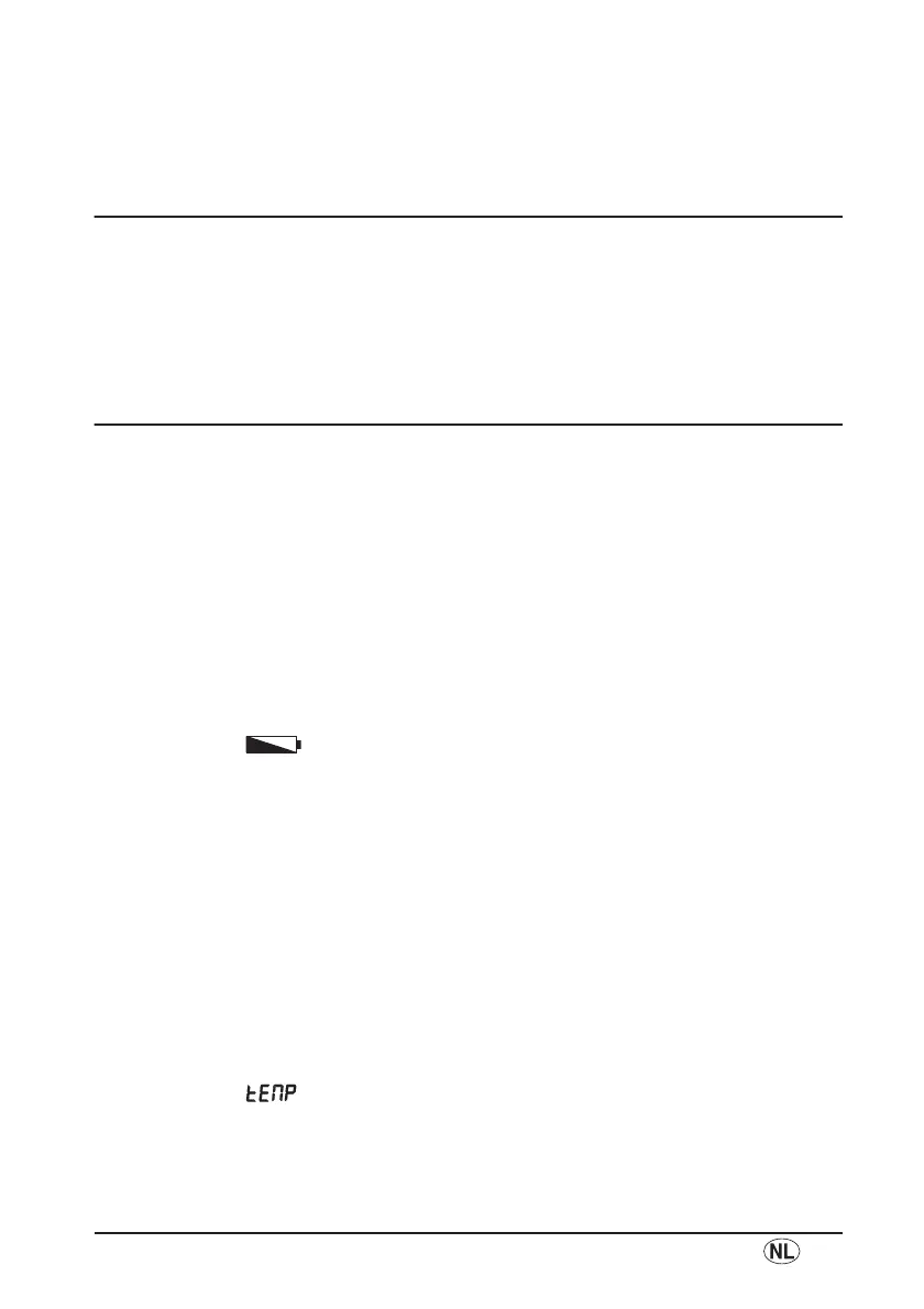 – De omgevingstemperatuur van de weegschaal is te hoog of te laag. Plaats de weeg-
