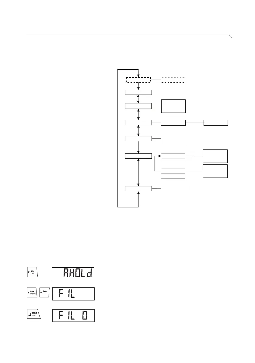 2. Tenere premuto il tasto freccia (bmi/menu), finchè