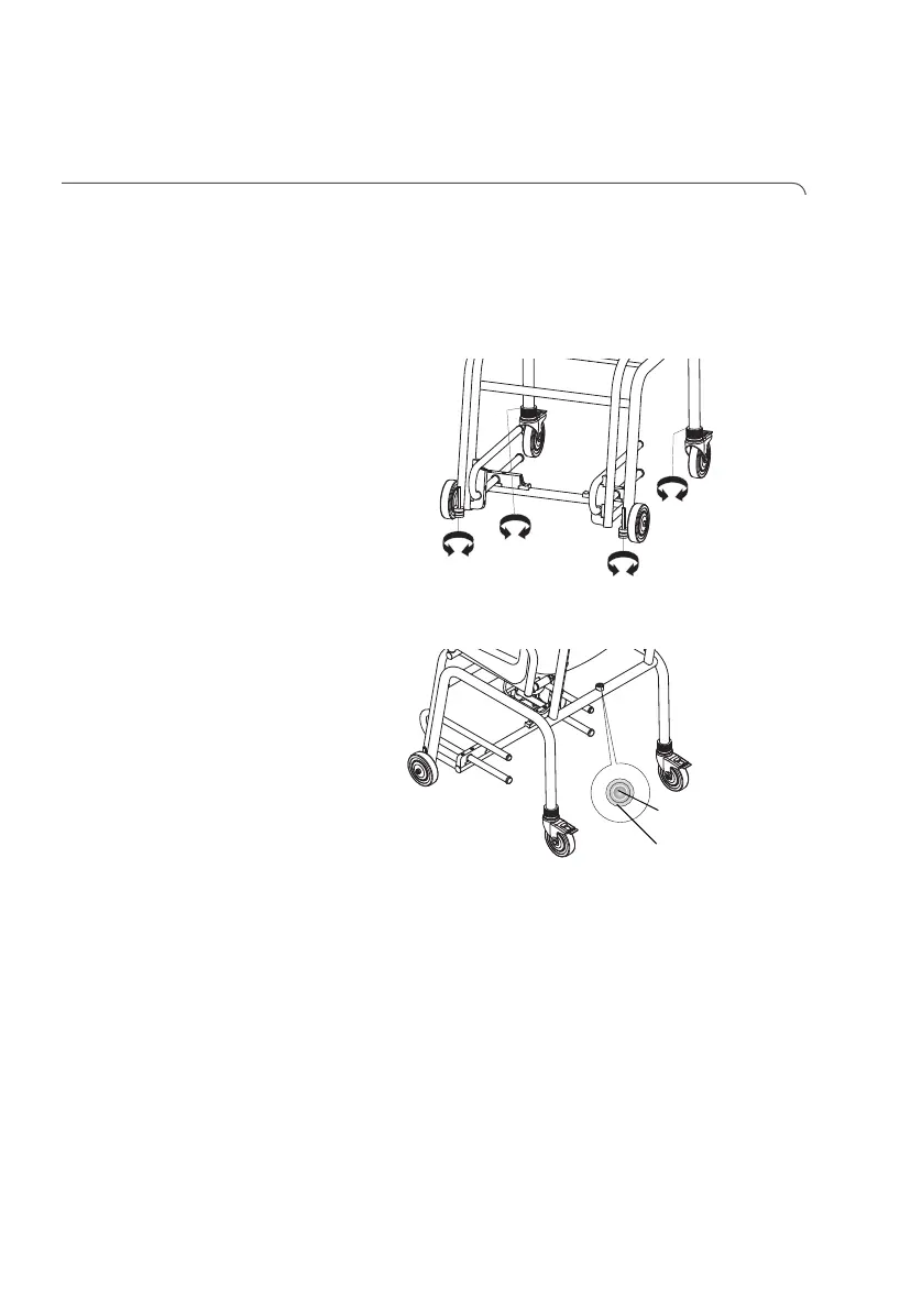 Con los tornillos niveladores de las ruedas de